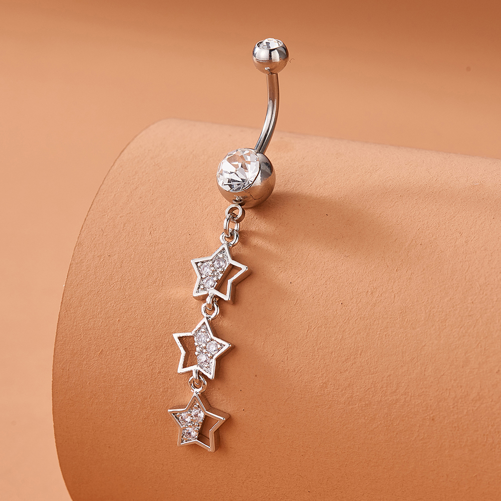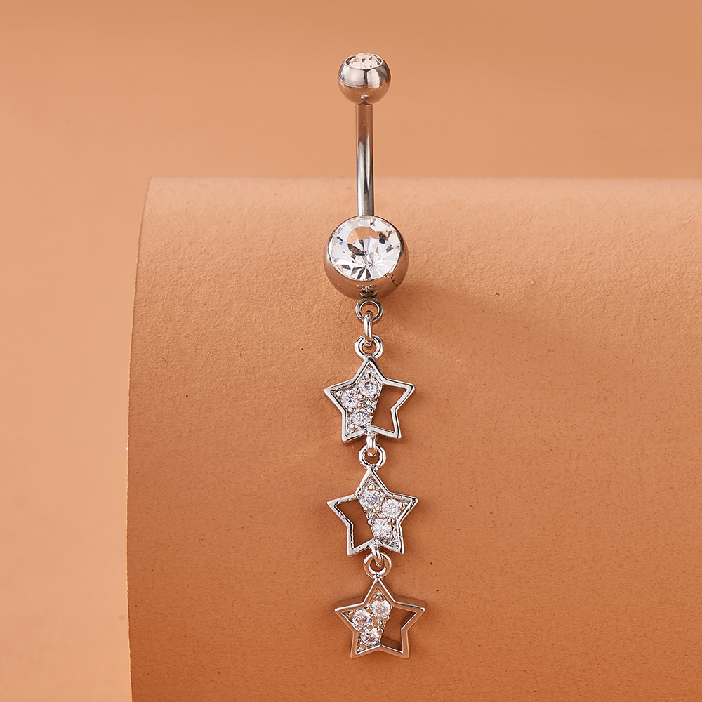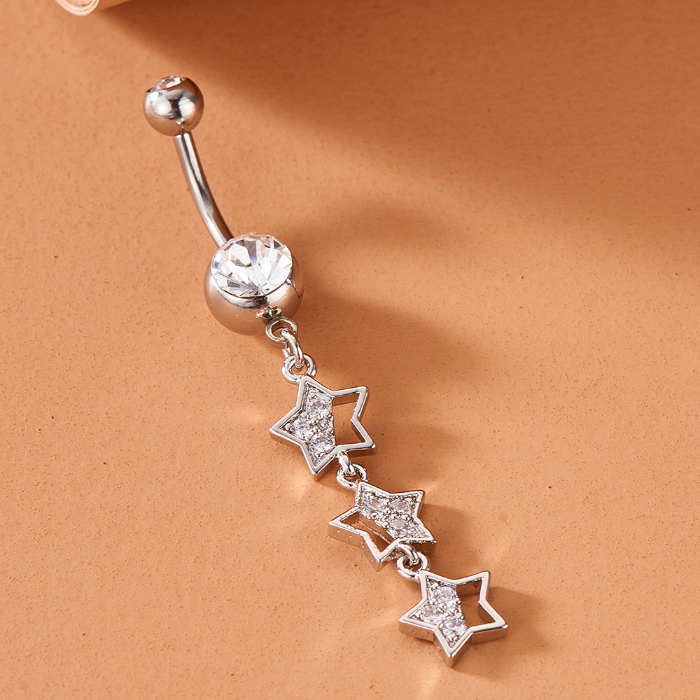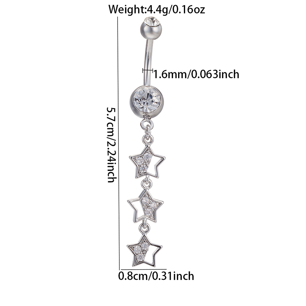 Moda Longa Em Forma De Estrela Zircão Umbigo Anel Feminino Corpo Piercing Jóias Decoração