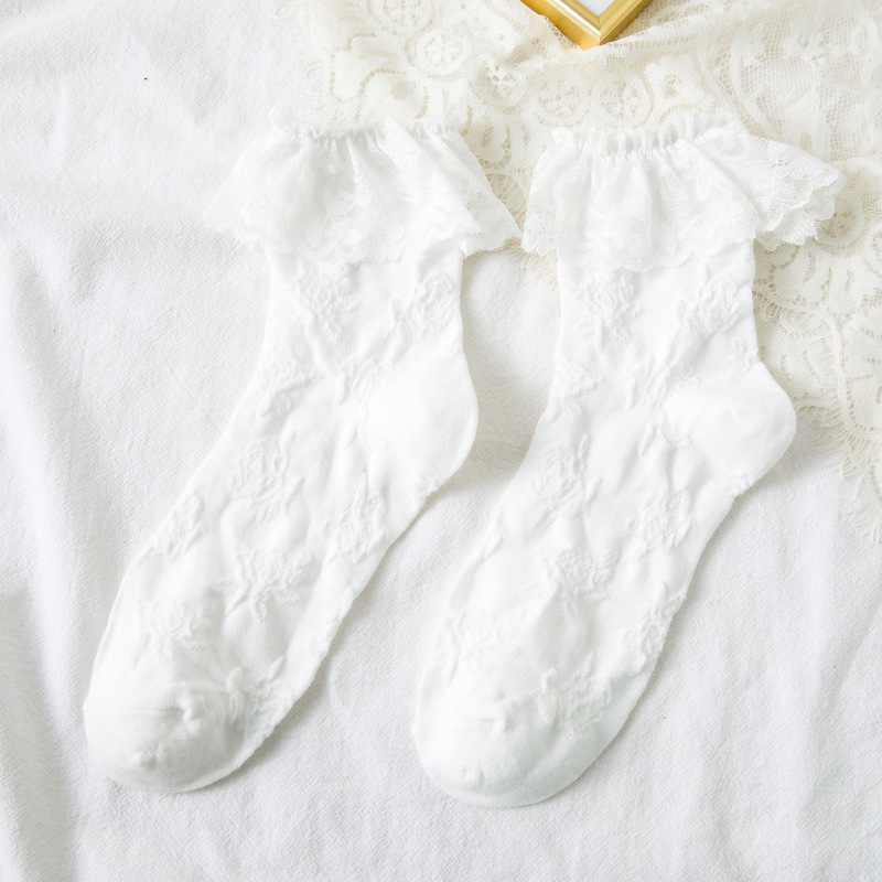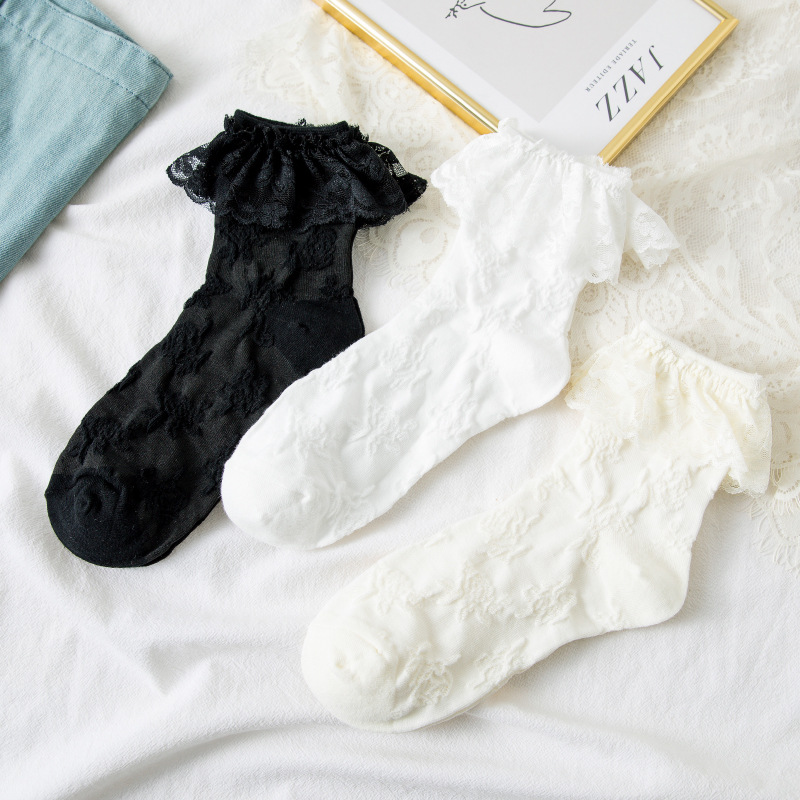 Moda Meias Lolita Estilo Japonês Menina Fofa Feminina Com Renda De Algodão Frilly Ruffle
