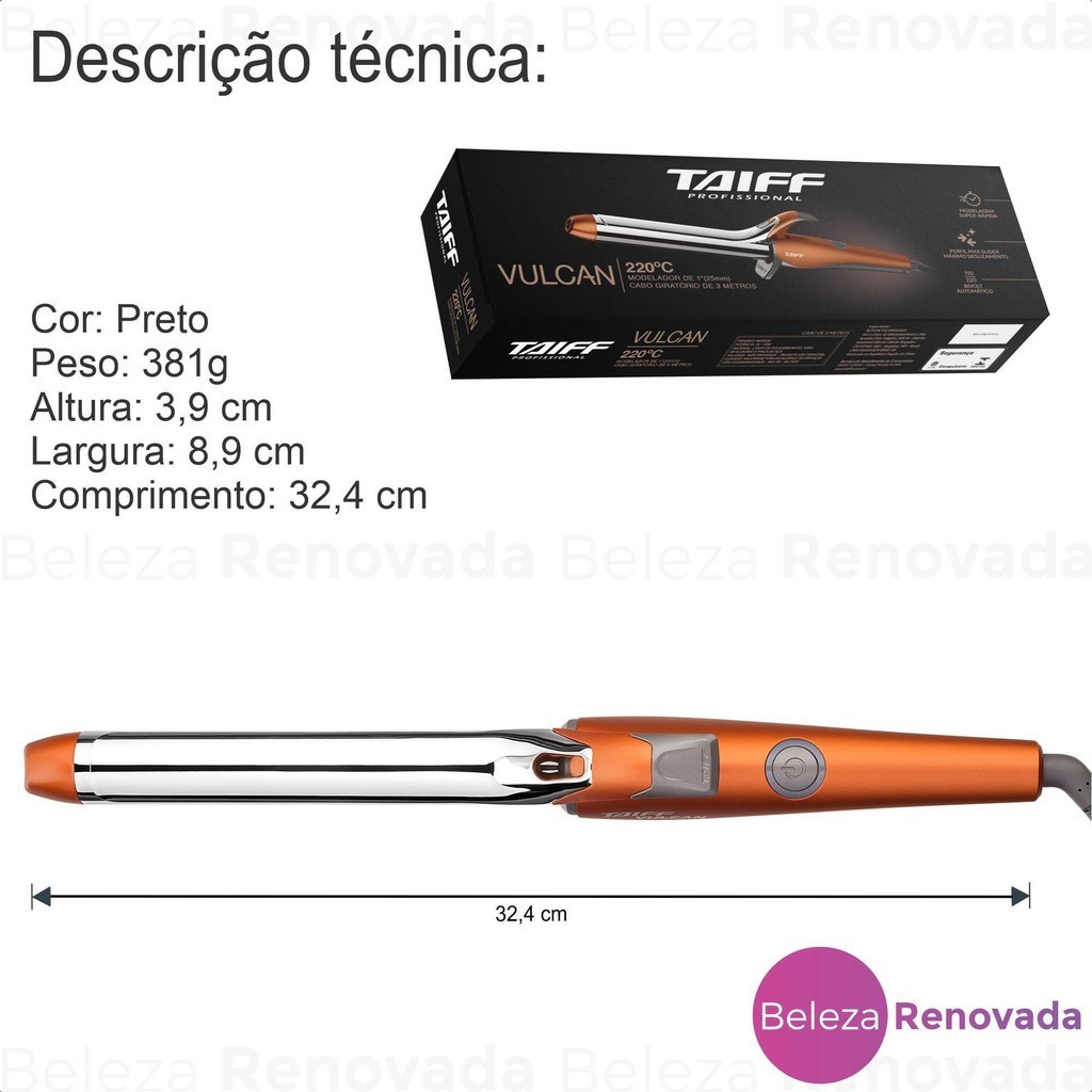 Modelador Cachos Taiff Vulcan Profissional 220°C Original