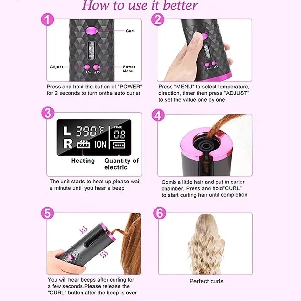 Modelador de cabelo automático sem fio com bateria recarregável de cerâmica embutida marisa