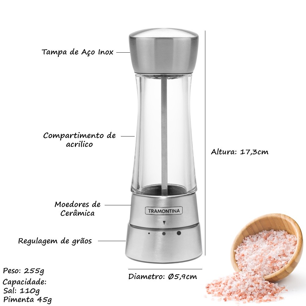Moedor De Sal E Pimenta Tramontina Em Aço Inox E Acrílico