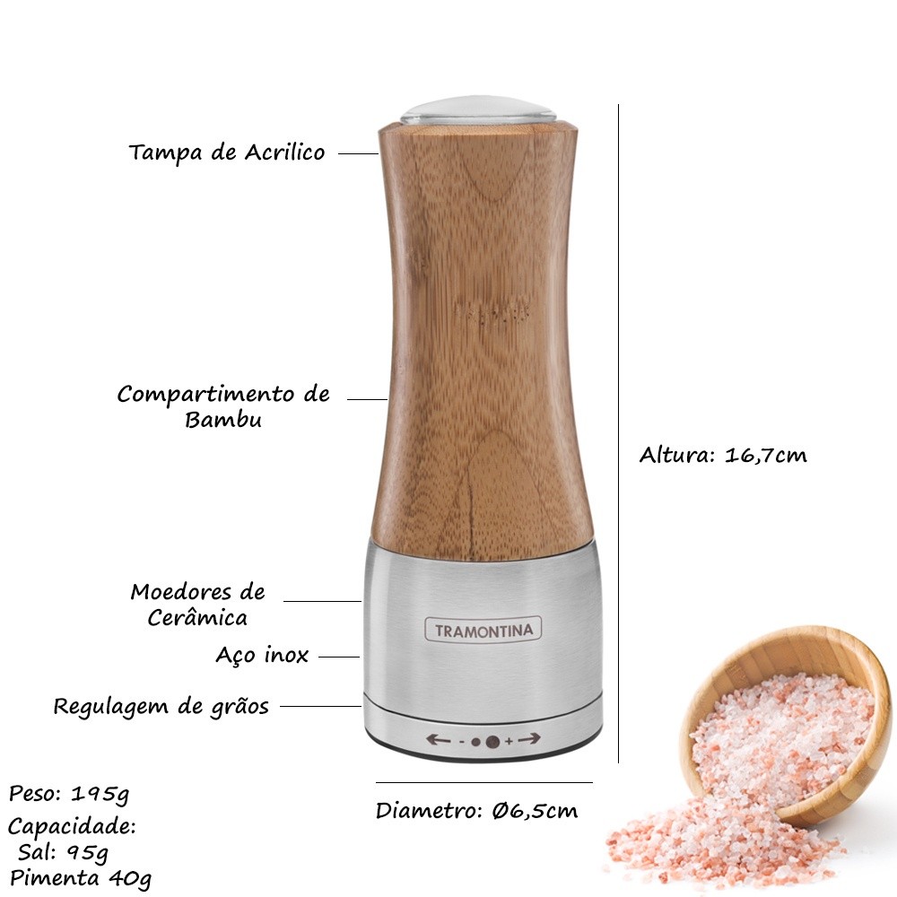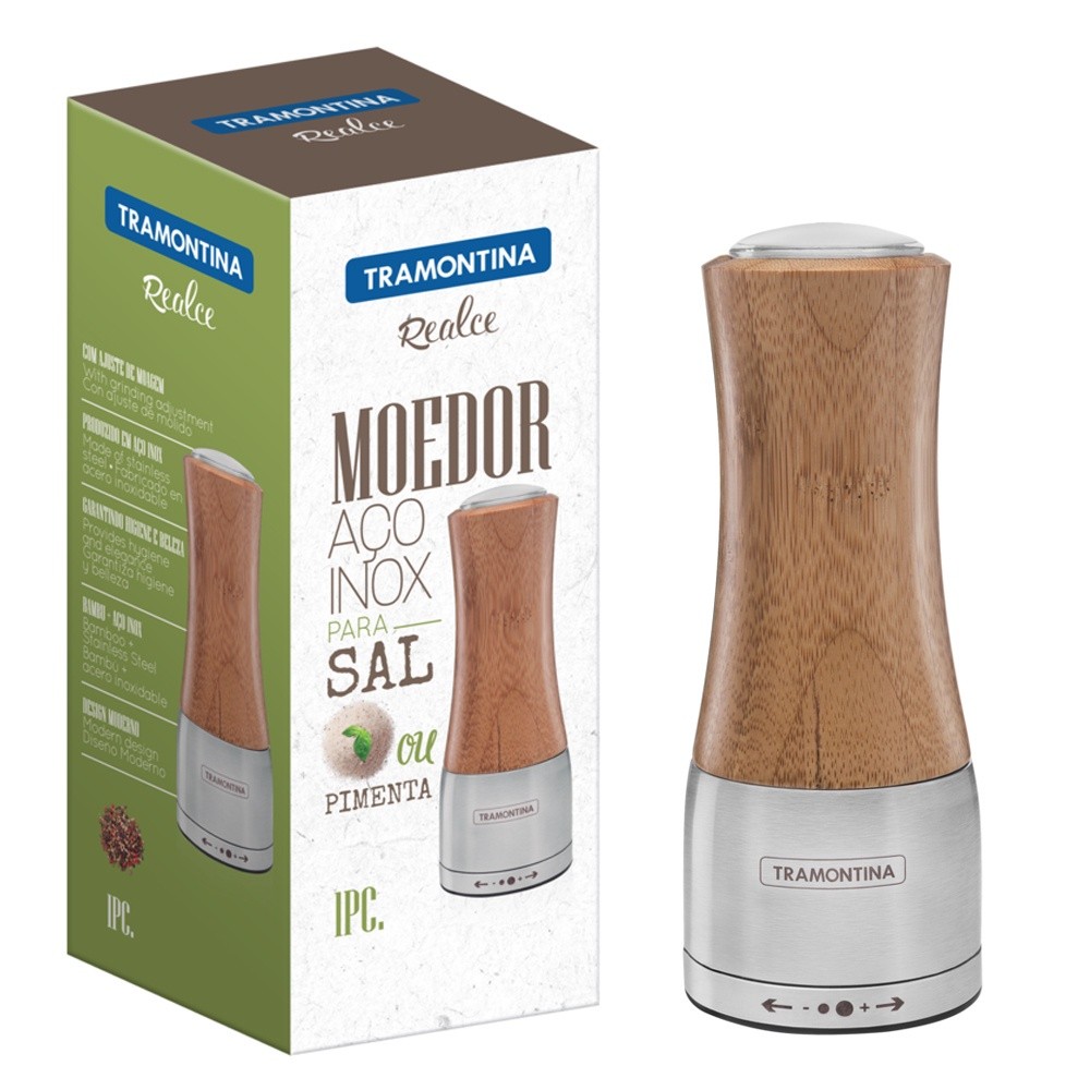 Moedor de Sal Ou Pimenta Tramontina Realce Em Inox E Bambu