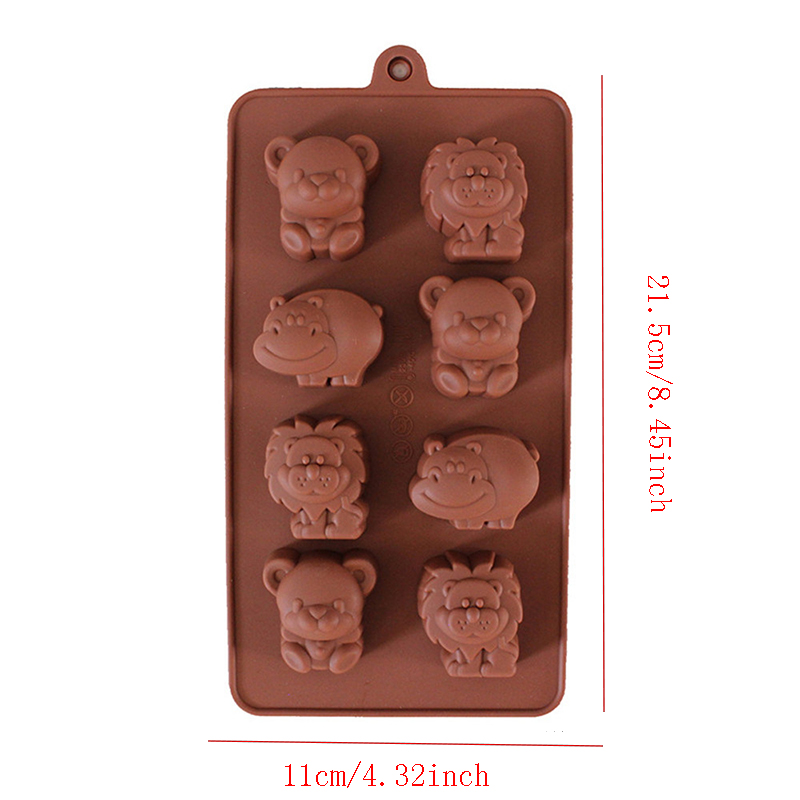 Molde De Chocolate De Silicone De Qualidade Alimentar-Urso , Hipopótamo E Leão De 8 Cavidades