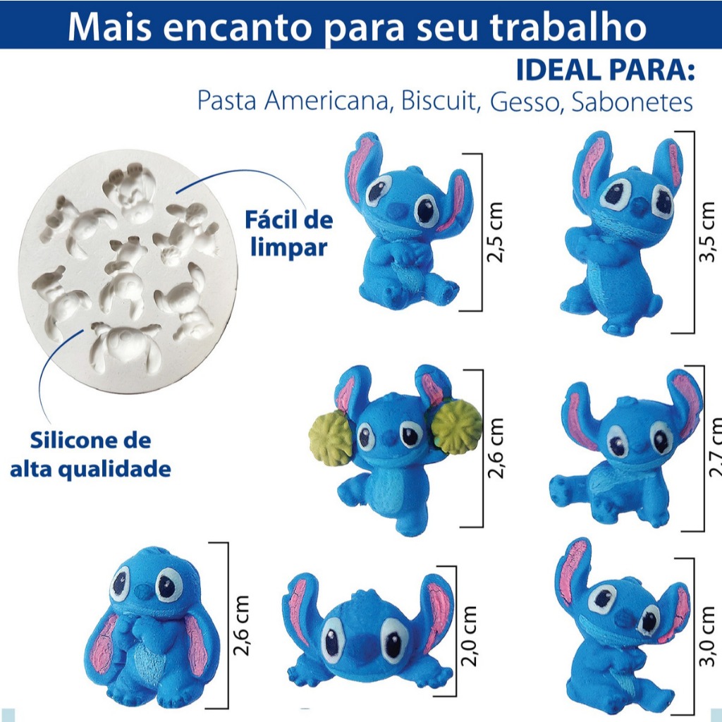Molde De Silicone Stitch 2,5cm e 3cm Molde Para Artesanato Pasta Americana Biscuit