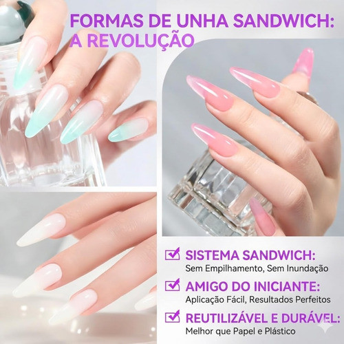 Molde F1 Sanduiche Almond D&z Apice Baixo Alongamento Unha Transparente unhas de gel polgygel acrigel nail art