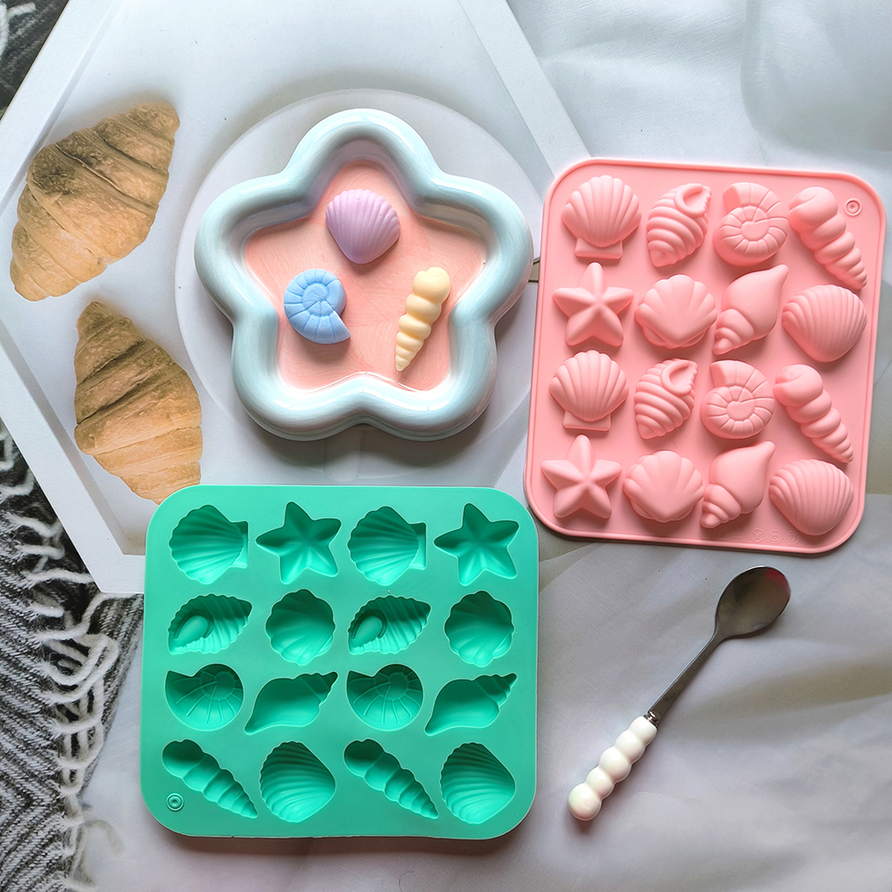 Molde Tema Oceano De Silicone Com 16 Furos E 8 Formatos Para Chocolate , Doces , Pudim , Biscoito , Decoração De Bolo ,