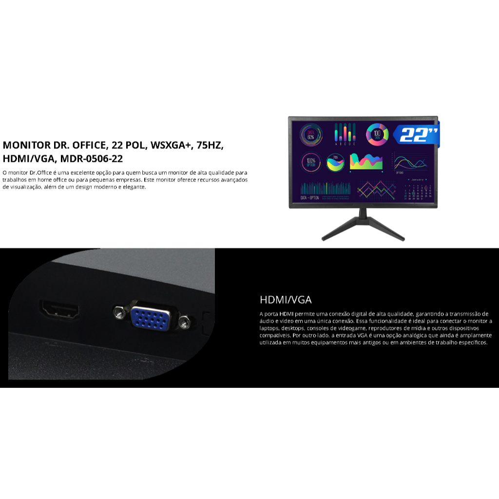 Monitor Dr. Office, 22 Pol, WSXGA+, 75Hz, HDMI/VGA, MDR-0506-22