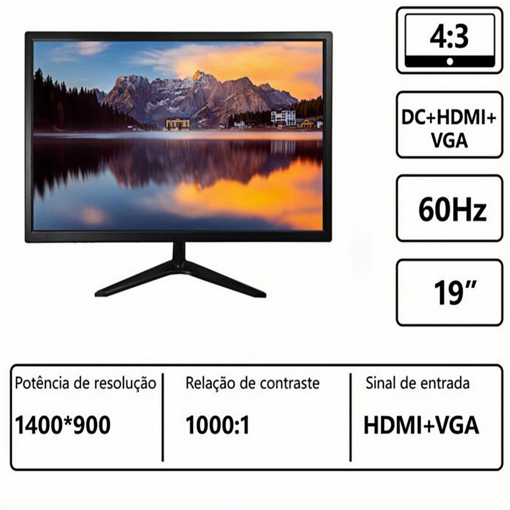 Monitor Tela 19 Polegadas 1K 60Hz Para Computador Pc Full Hd Hdmi Vga