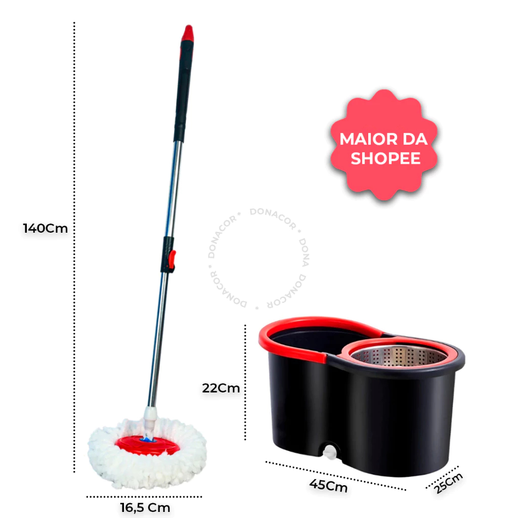 Mop Giratorio Cabo Inox limpeza Cesto Em Inox 14 Lt -Balde Esfregão 360 Universal Original