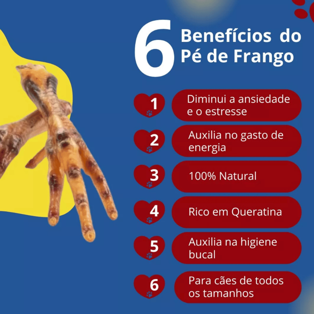 Mordedor Petisco Pe de Galinha Desidratado Mastigavel LL Pet para Cães