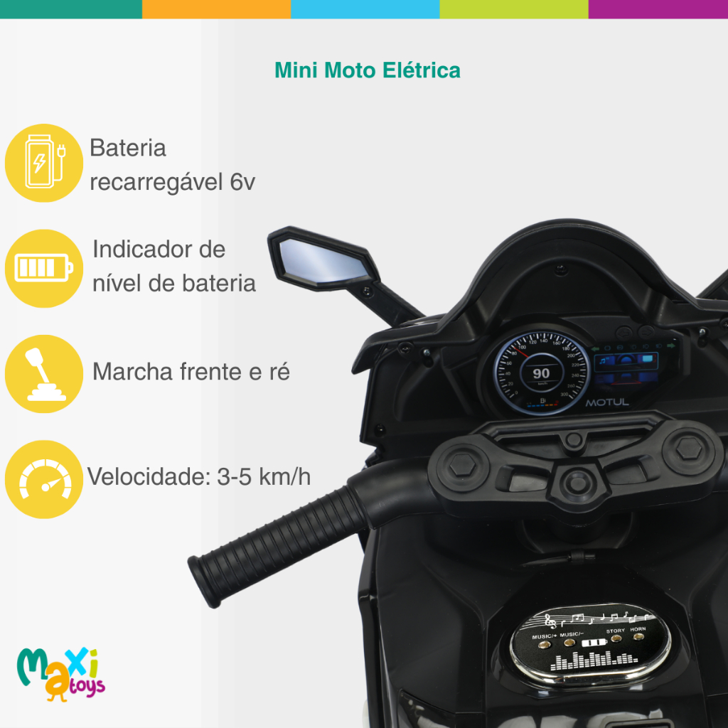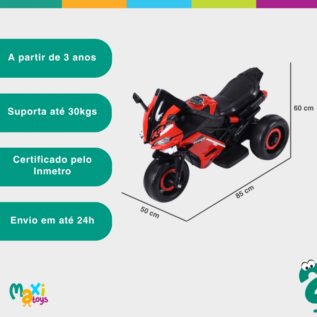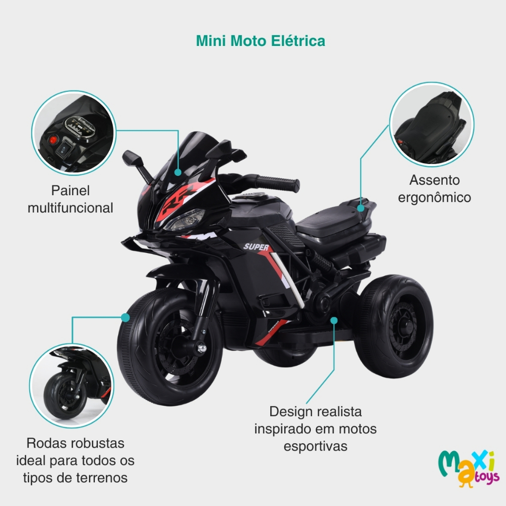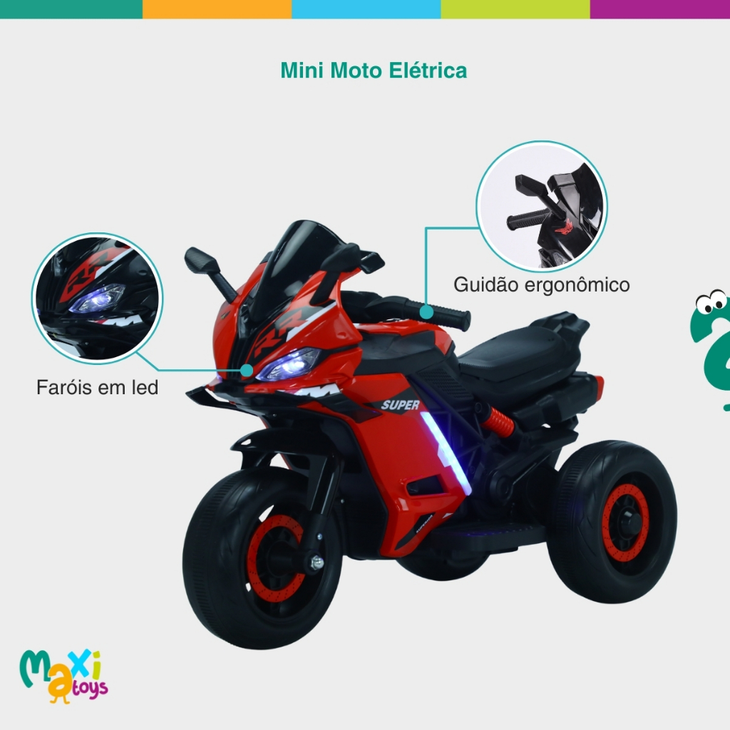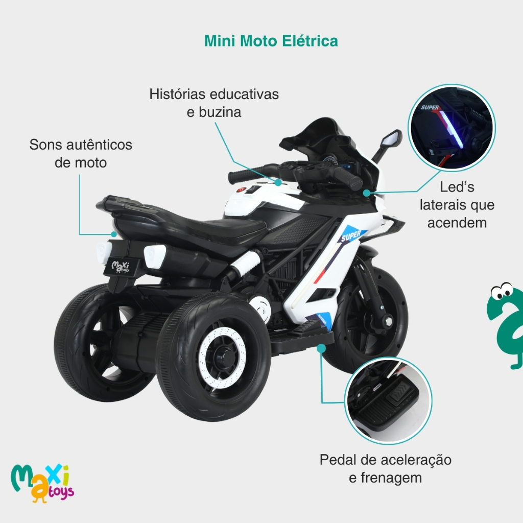 Moto Elétrica Infantil Mini 3 Rodas Frente/Ré BIVOLT Maxi Toys
