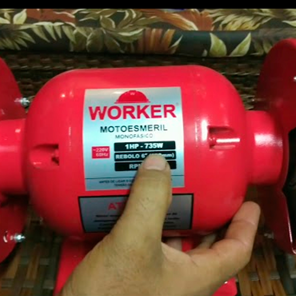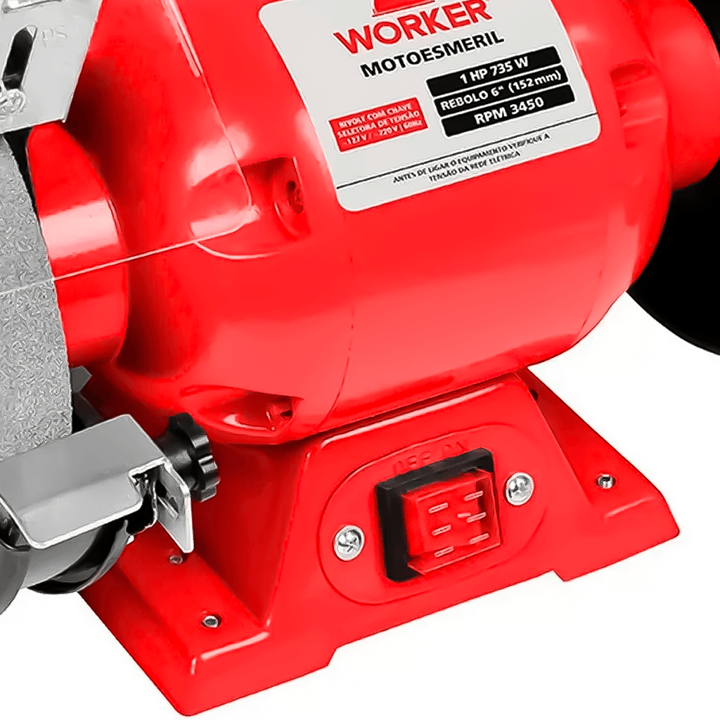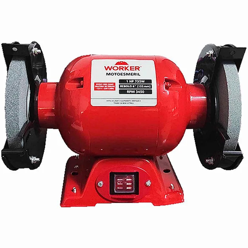 Moto Esmeril De Bancada 6Pol. 1HP 1CV Monofásico 110V 220V Bivolt 735W 3450RPM - WORKER