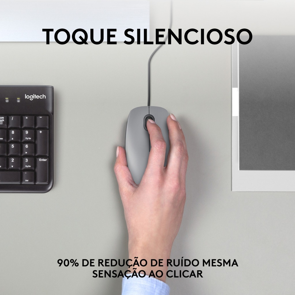 Mouse Com Fio Usb M110 Silencioso Cinza Logitech