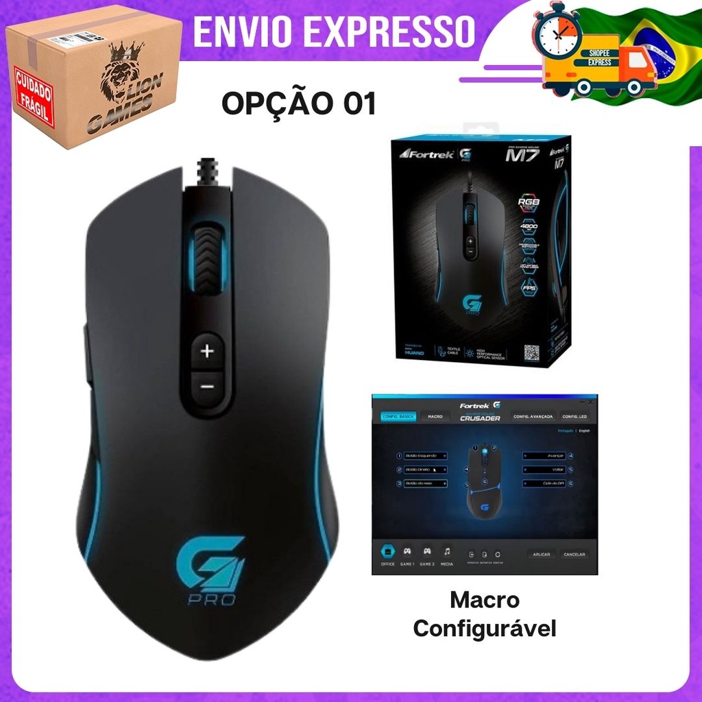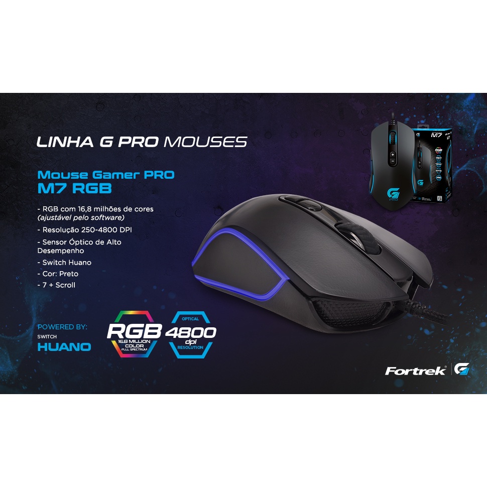 Mouse Gamer PRO M7 RGB Preto FORTREK COM MACRO