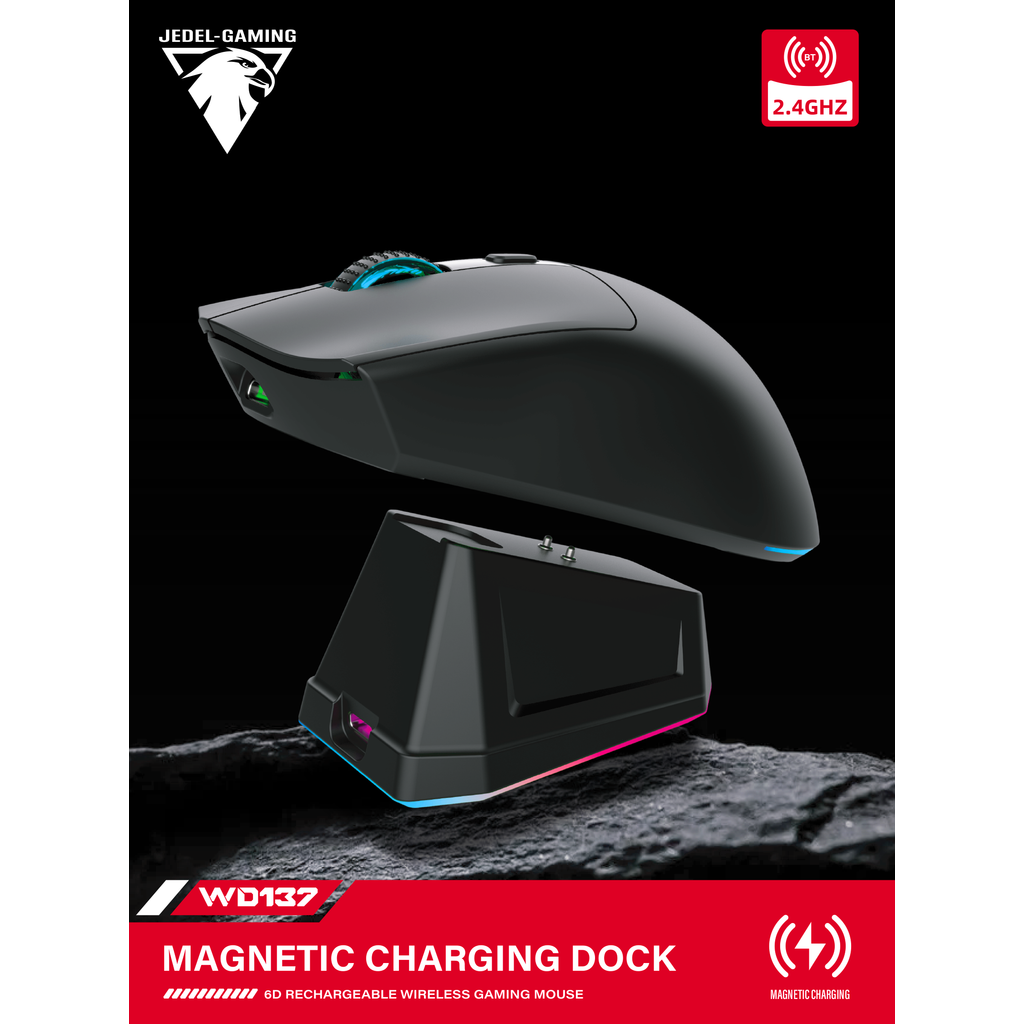 Mouse Gamer Sem Fio WD139 Leve com Dock de Carregamento Magnético RGB, ideal para PC, Mac e Notebook.