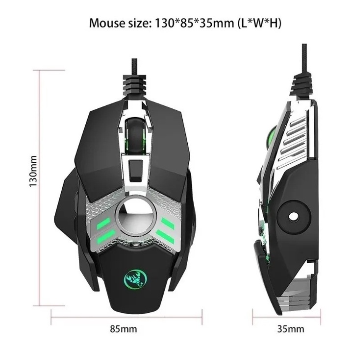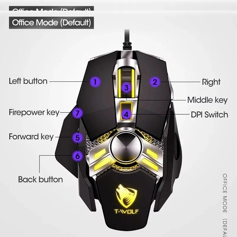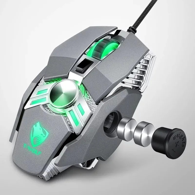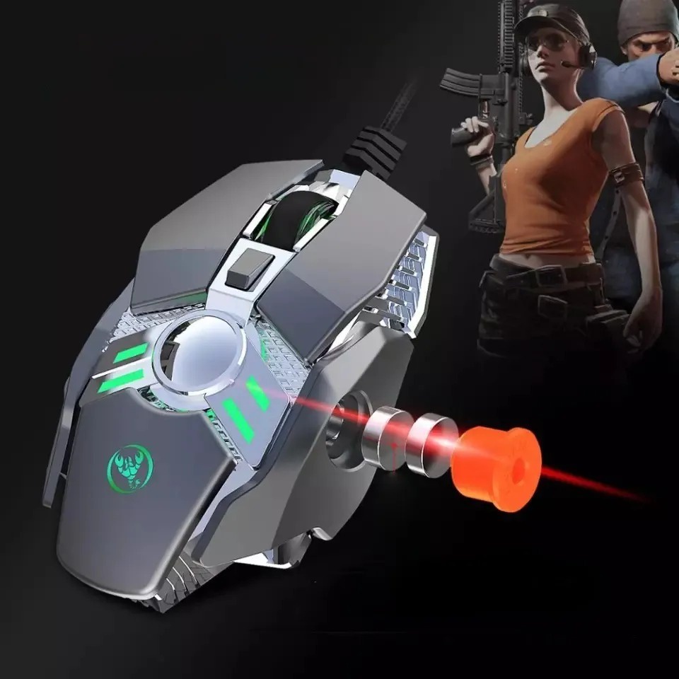 Mouse Gamer WARRIOR V-10/FY-701 DPI 4800 7 Botoes Com peso e LED RGB Design Ergonomico