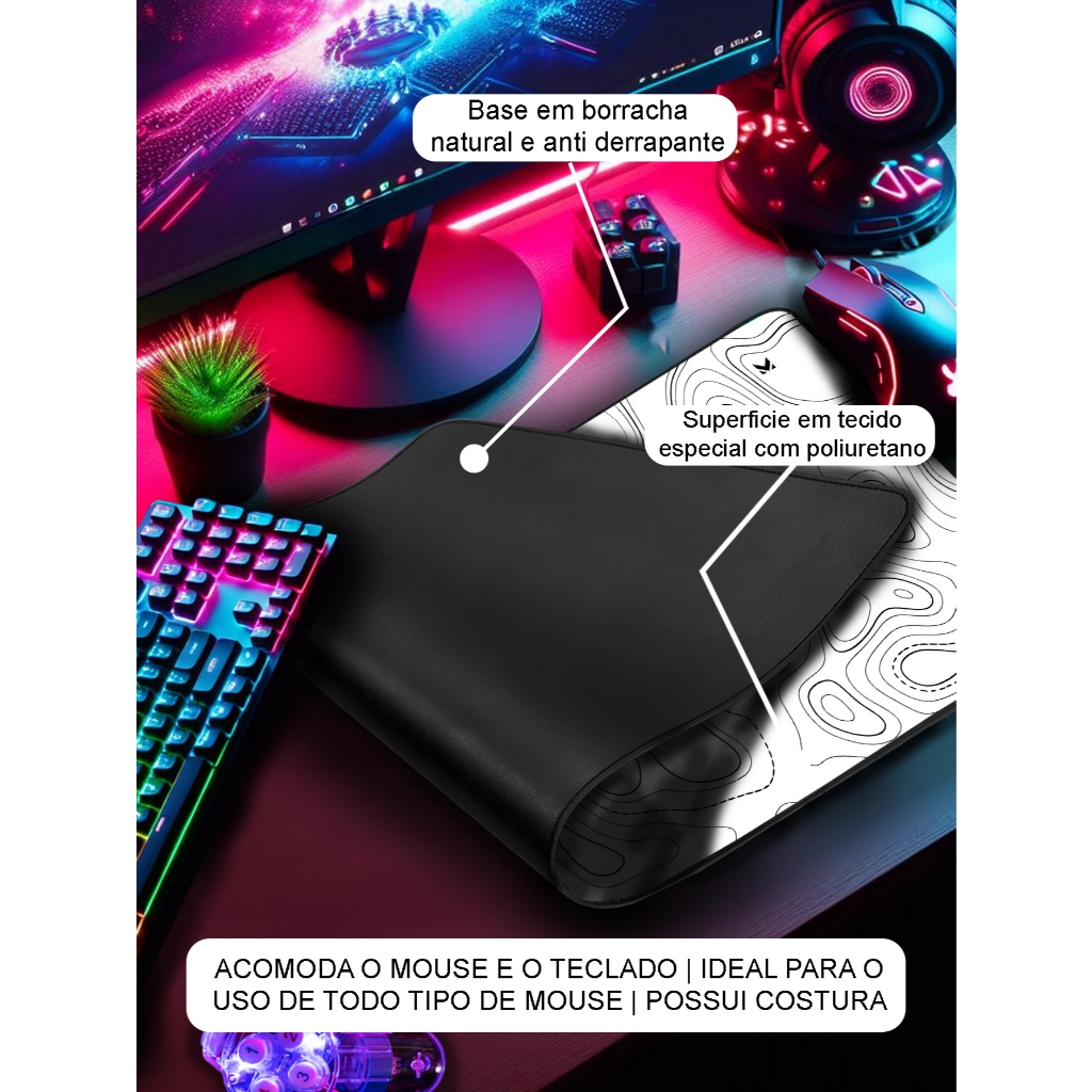 Mouse Pad Gamer Abstrato Marca Muleka Borda Custurada Diversas cores e Tamanhos