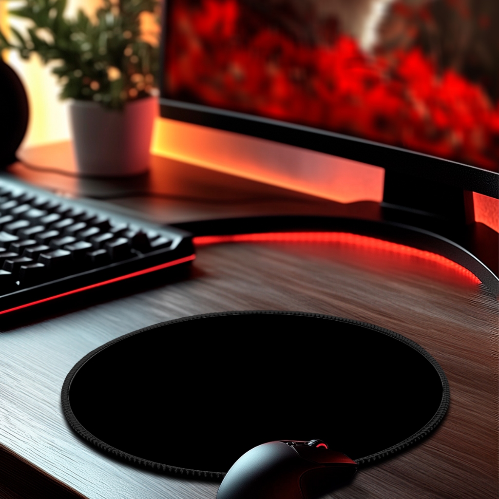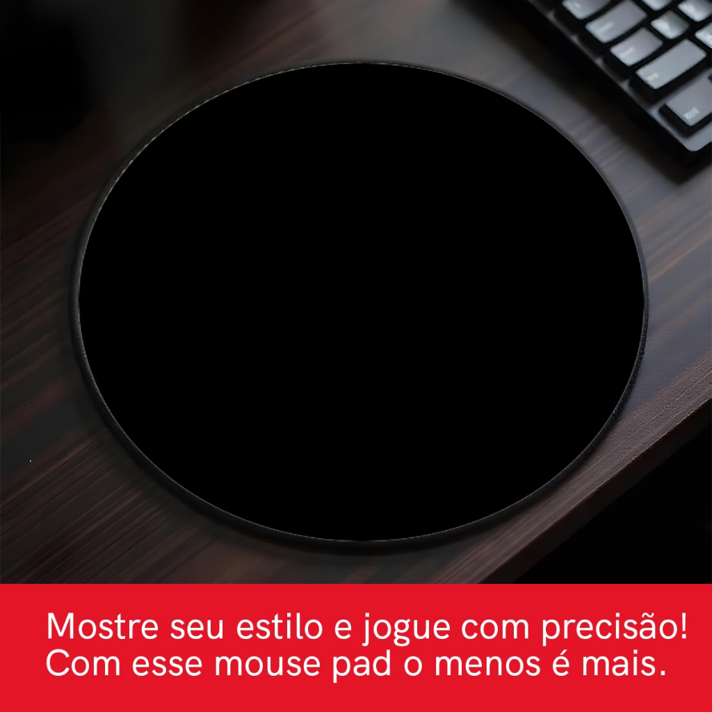 Mouse Pad Preto Redondo Antiderrapante 20x20cm De Diametro Premium Borda Costurada