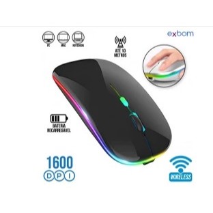 Mouse Sem Fio Recarregável Dual Mode MS-S350L Exbom com LED RGB, 2.4GHz e Bluetooth 5.0 – Design Ergonômico – Preto