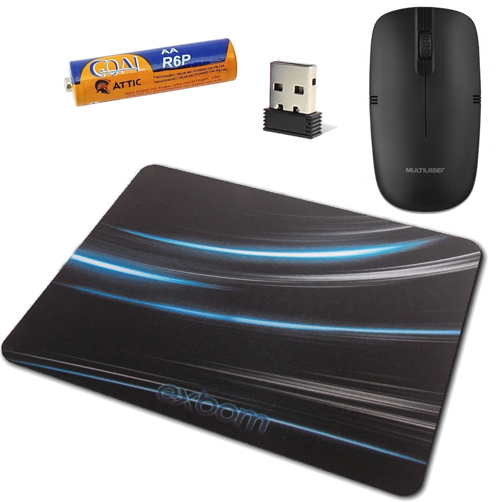 Mouse Sem Fio Wireless 2.4ghz 1200 Dpi - Multilaser MO285 + Pilha AA