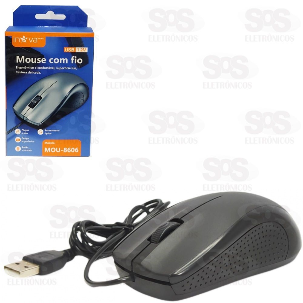 Mouse com fio 1.2m USB Inova Prime 1200dpi