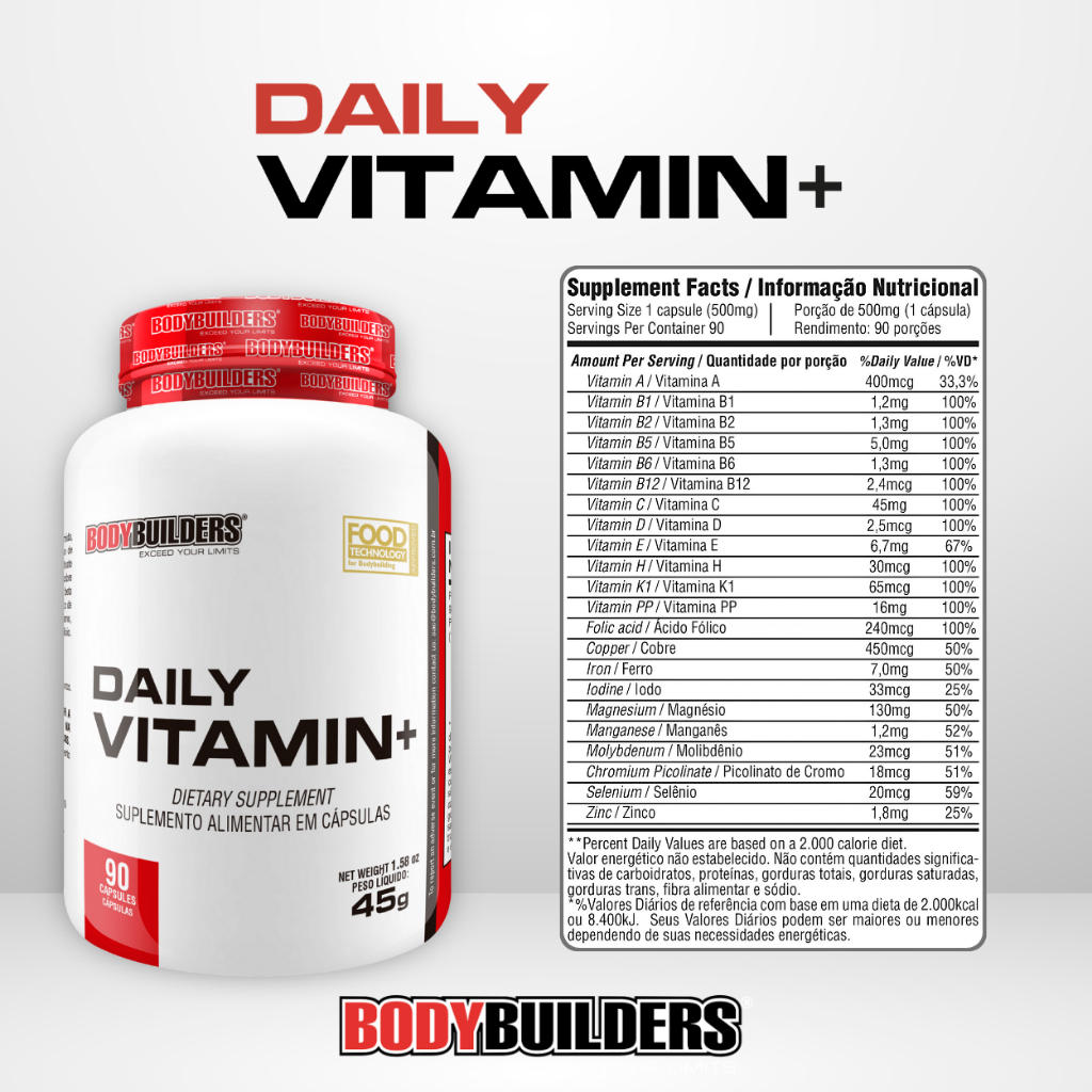 Multivitamínico Daily Vitamin+ 90 Cápsulas - Fortalecimento da Imunidade - Bodybuilders