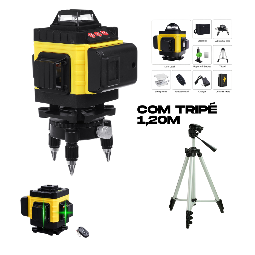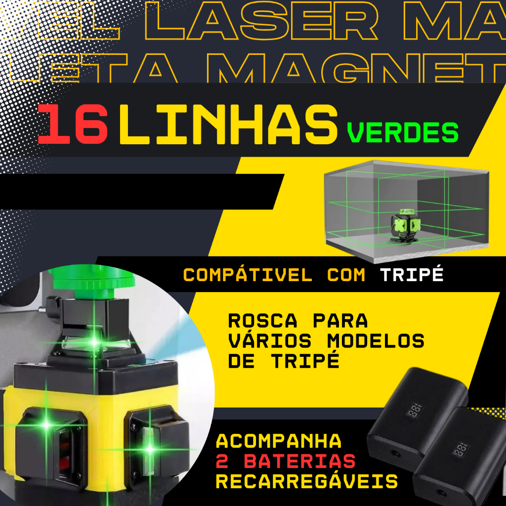 Nível Laser Recarregável 16 Linhas Verde Profissional 3d Autonivelante Com Controle 360 4d