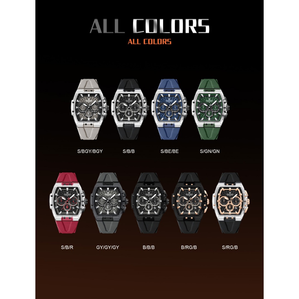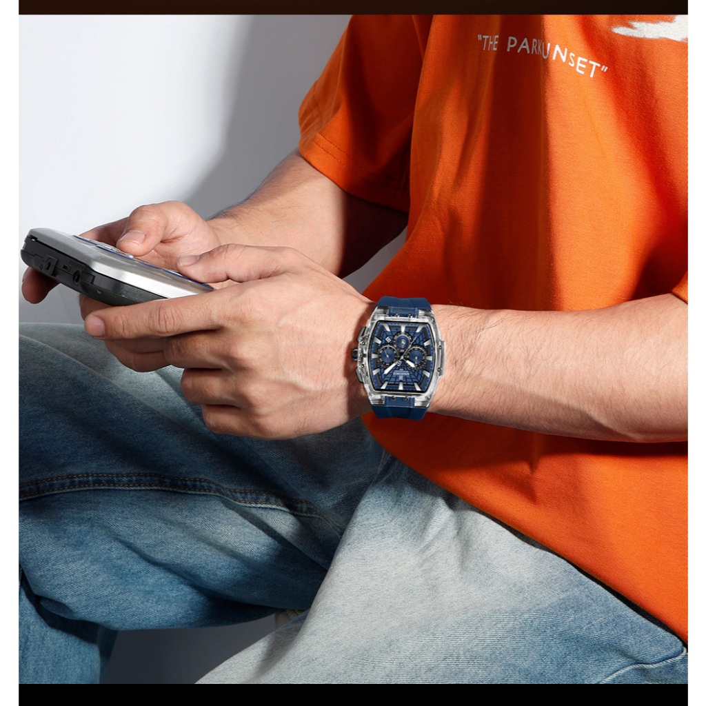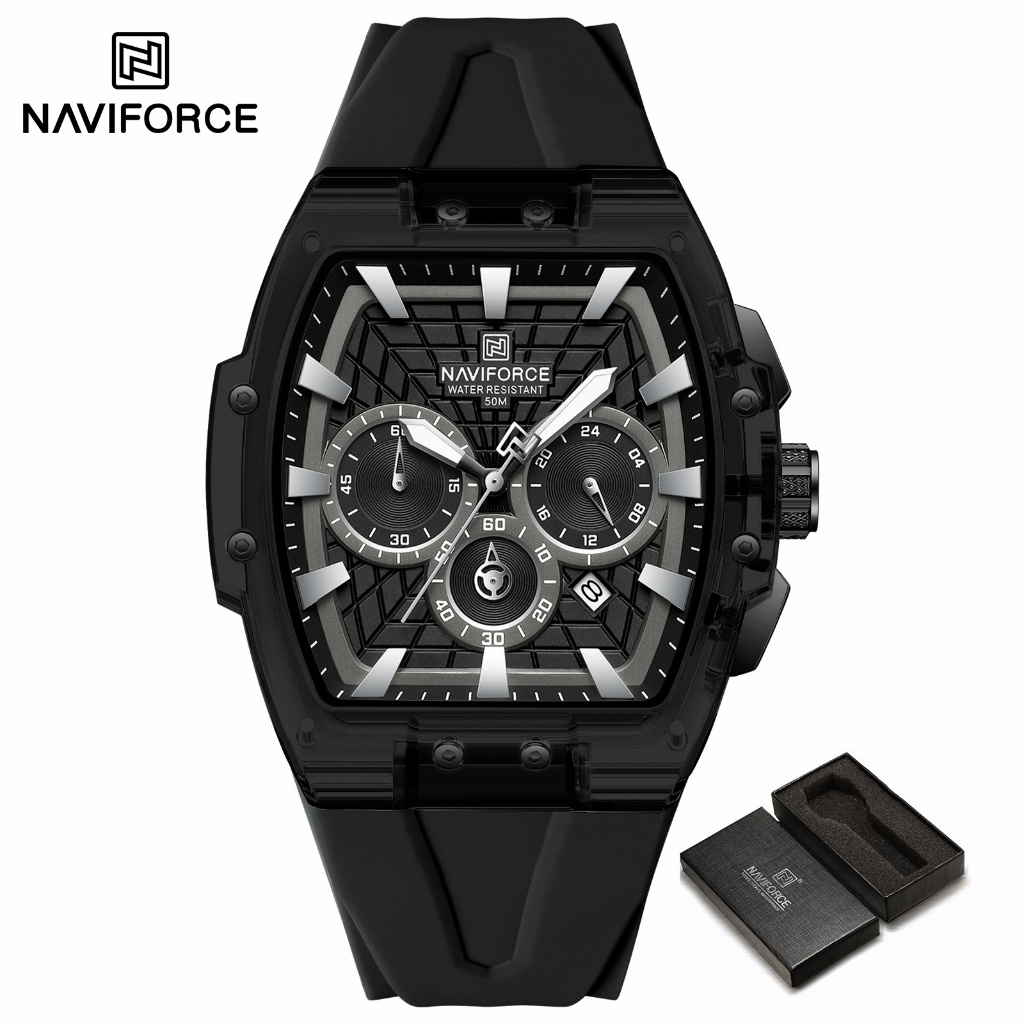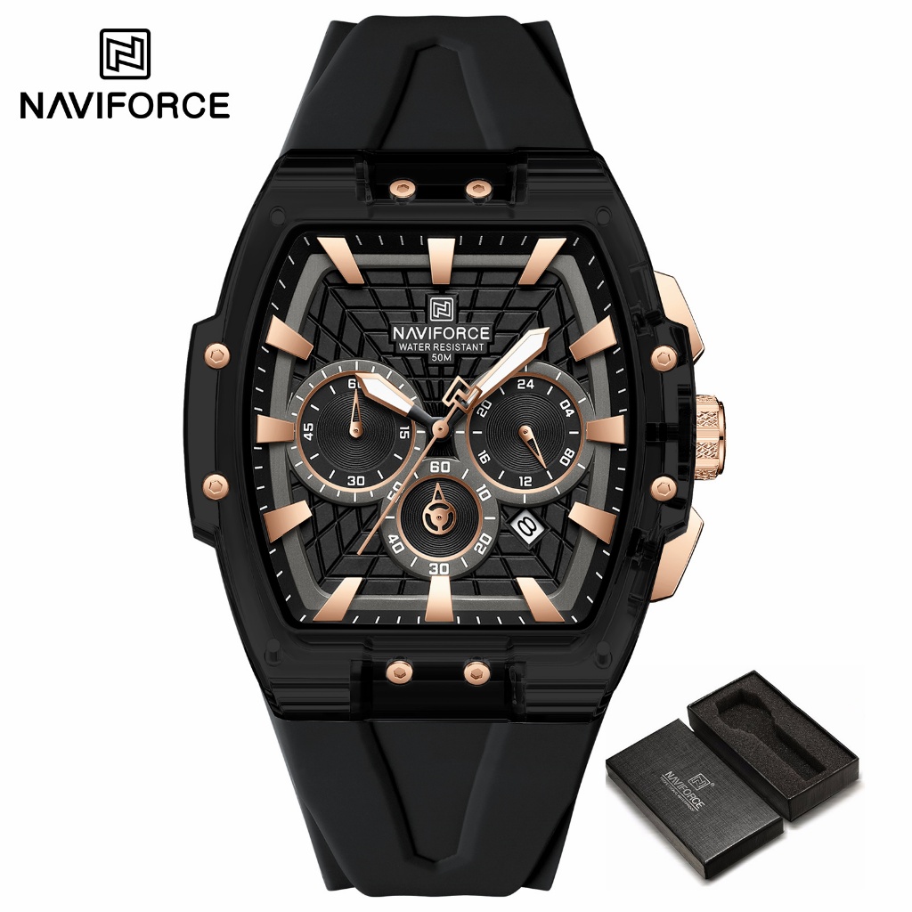 NAVIFORCE 6113 Novo Design Transparente Tonneau Masculino Quartzo Relógio Esportivo Impermeável