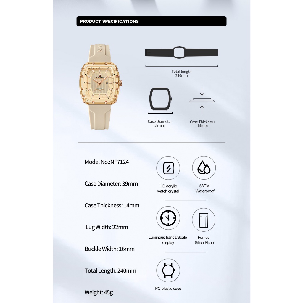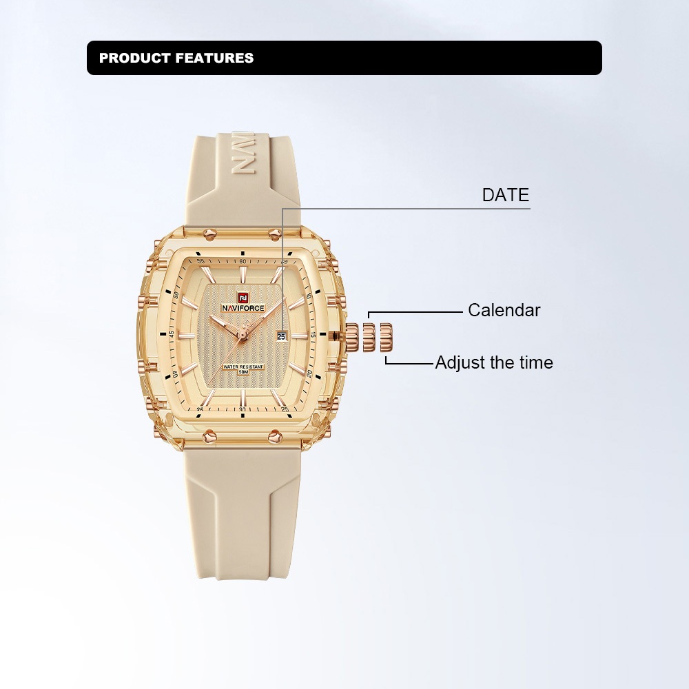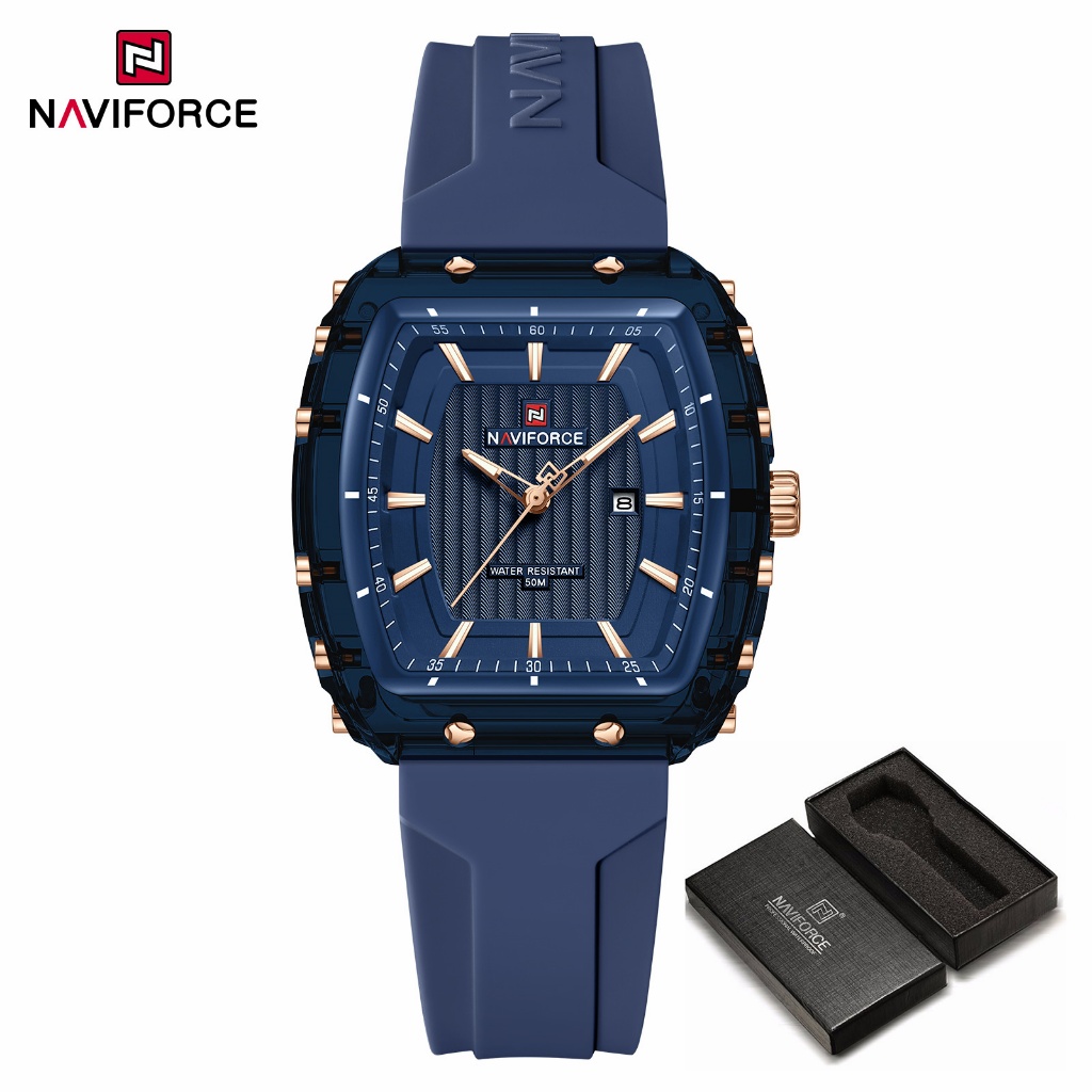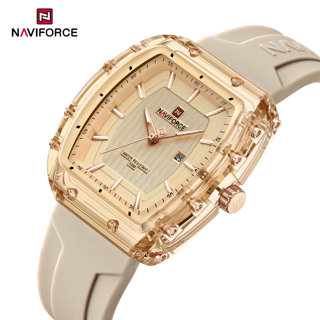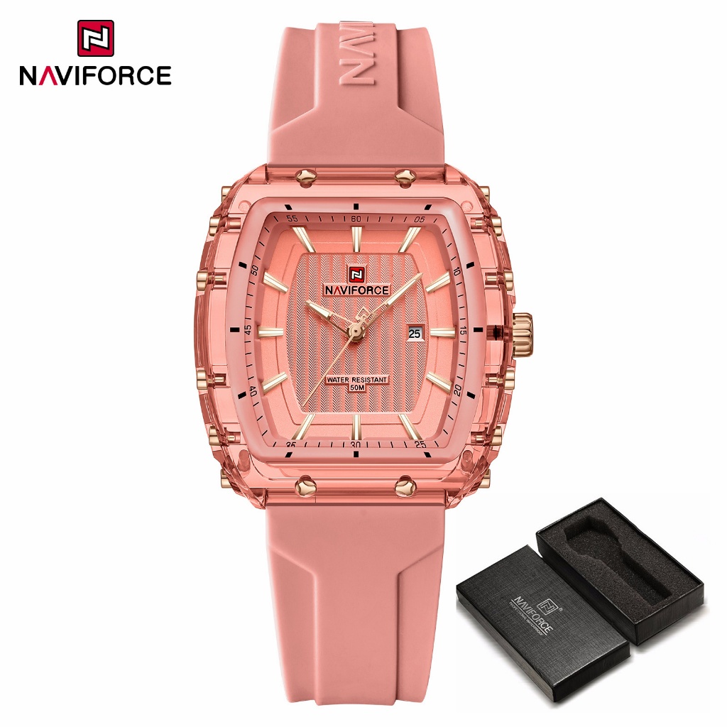 NAVIFORCE 7124 Relógio Feminino Com Pulseira De Silicone E Movimento De Calendário De Quartzo
