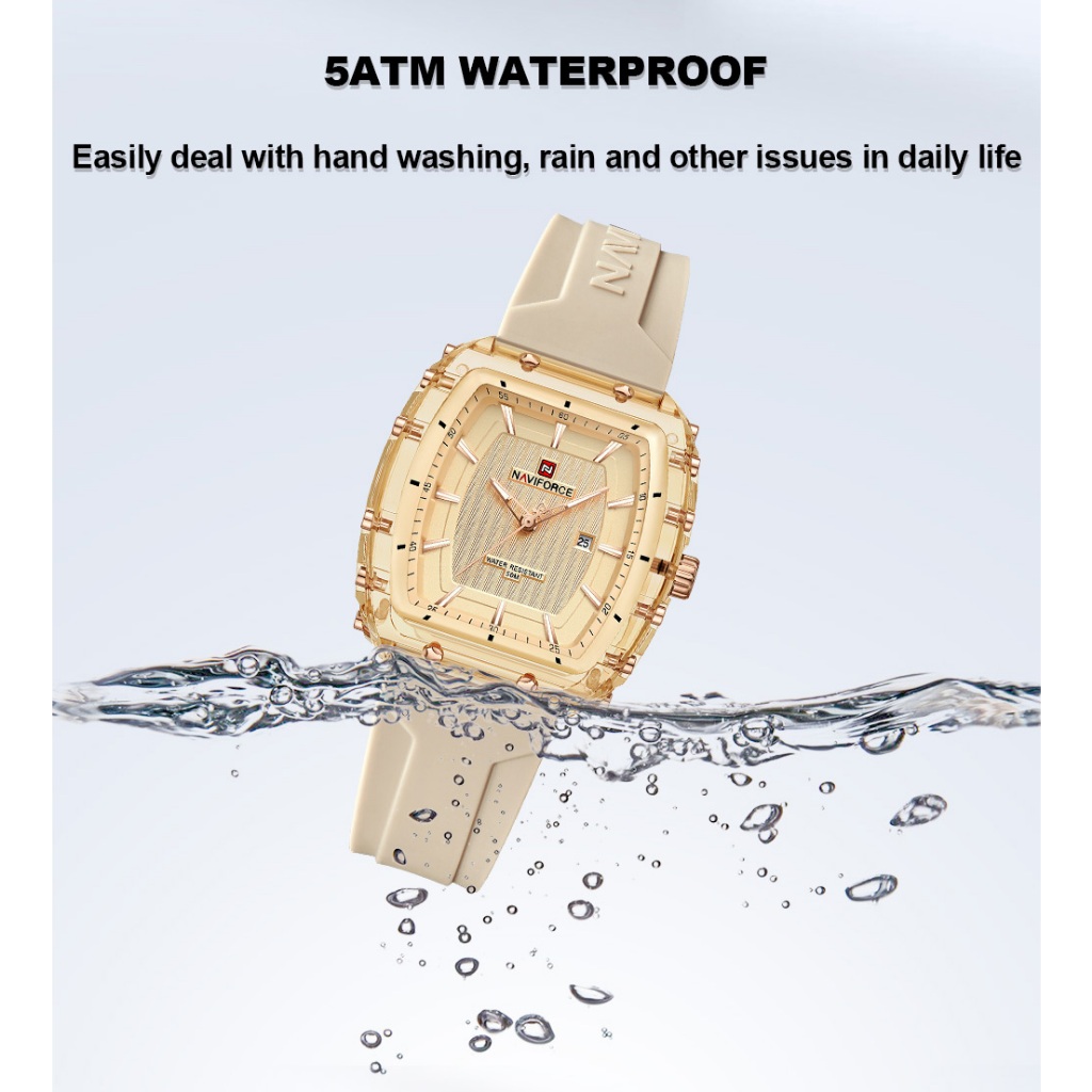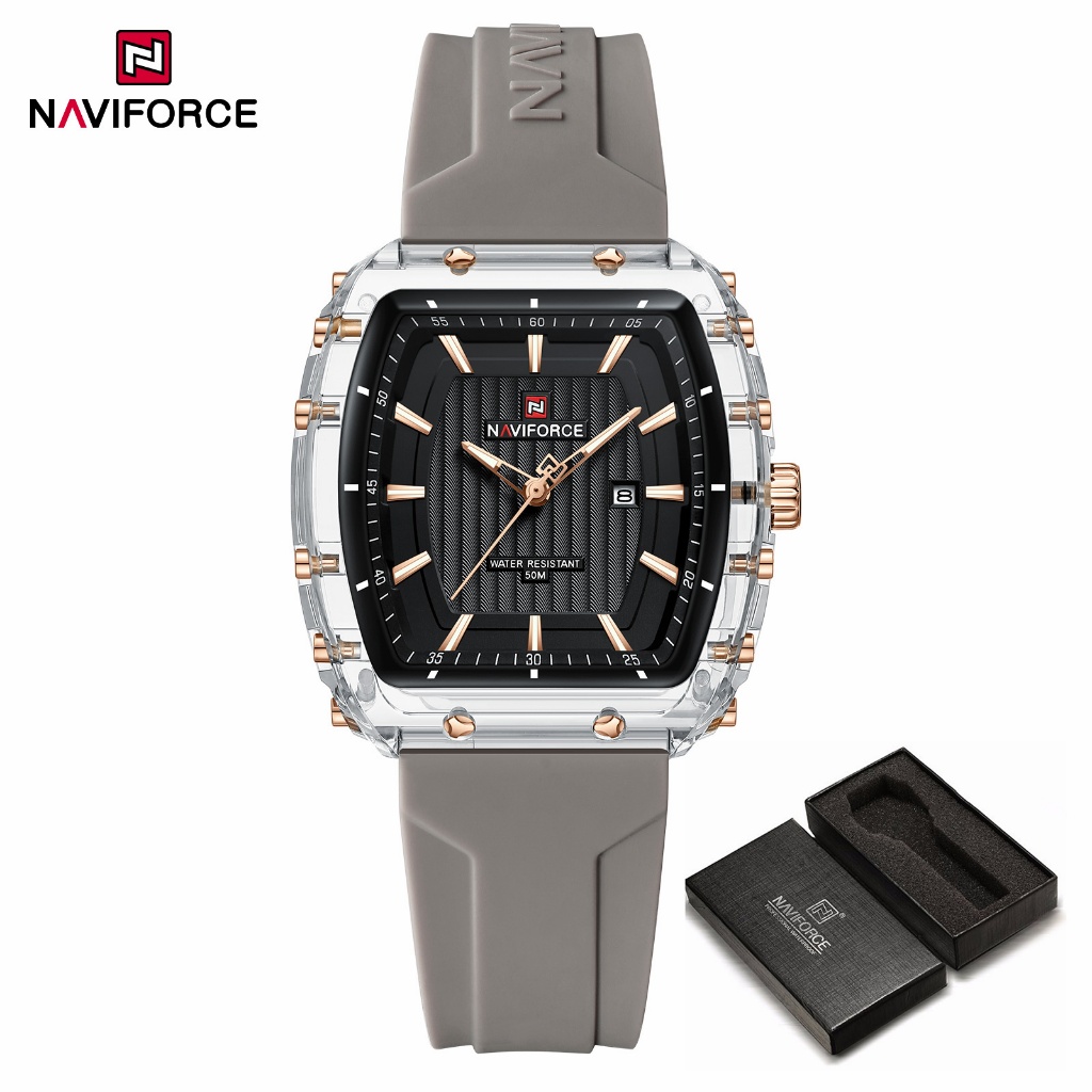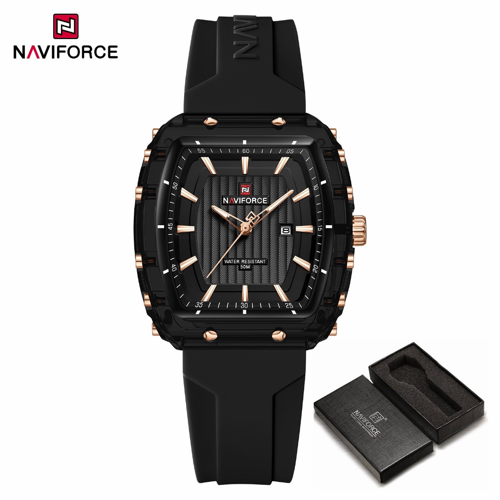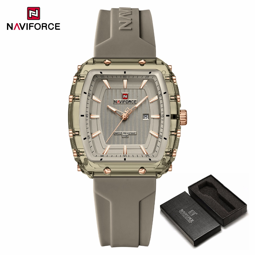 NAVIFORCE 7124 Relógio Feminino Com Pulseira De Silicone E Movimento De Calendário De Quartzo