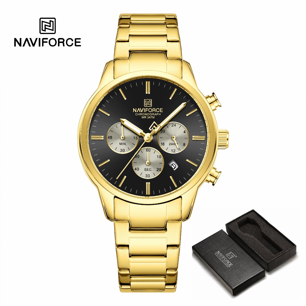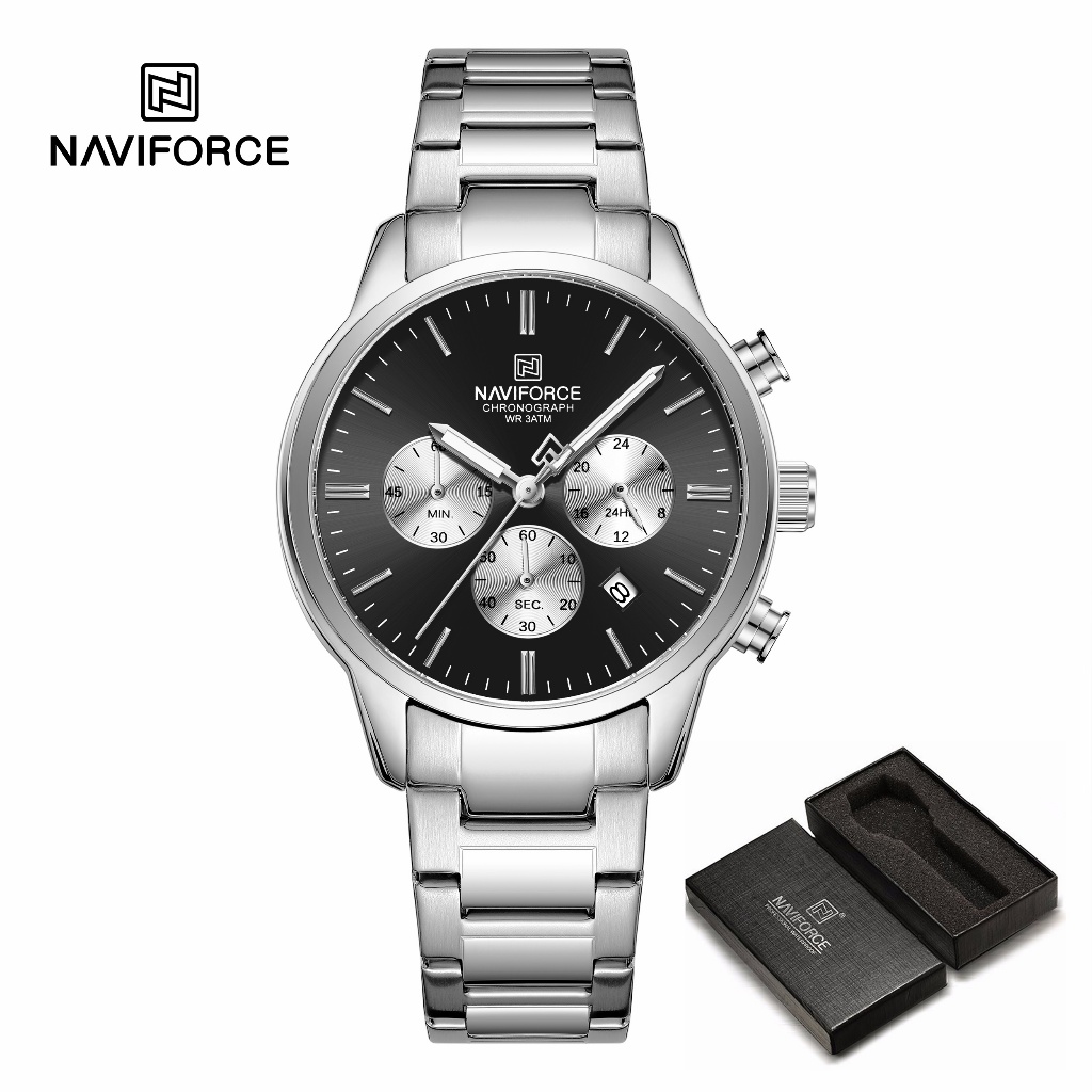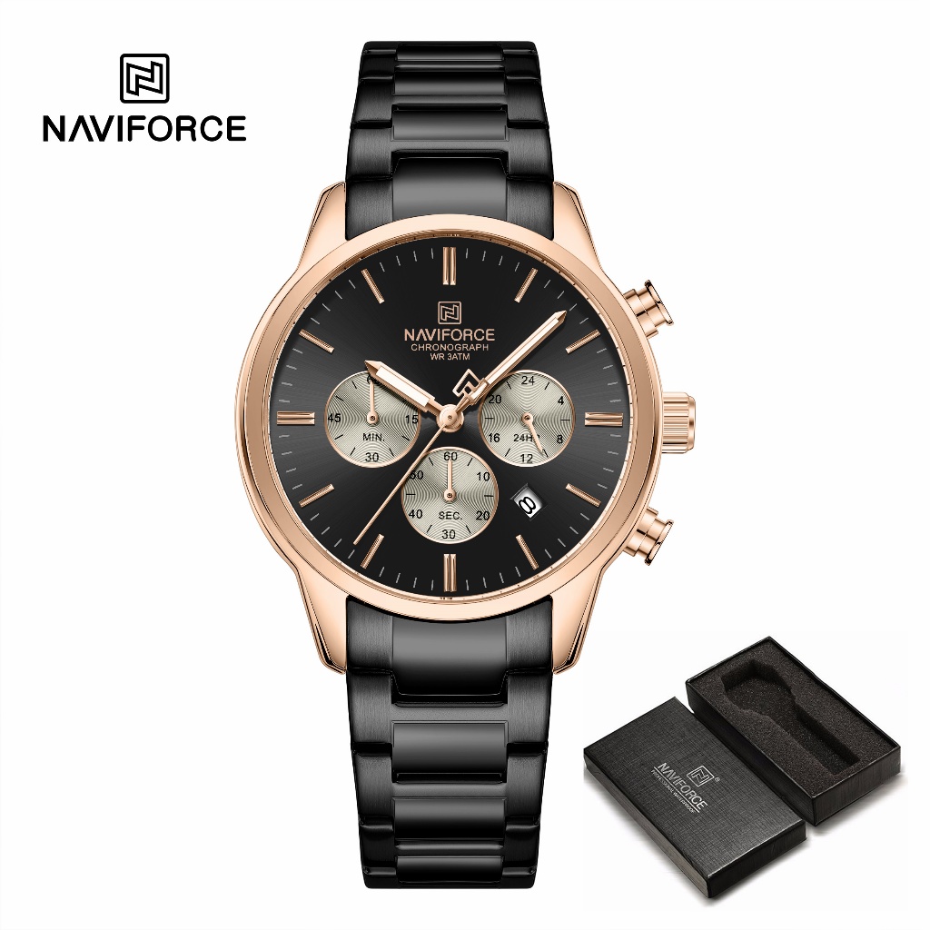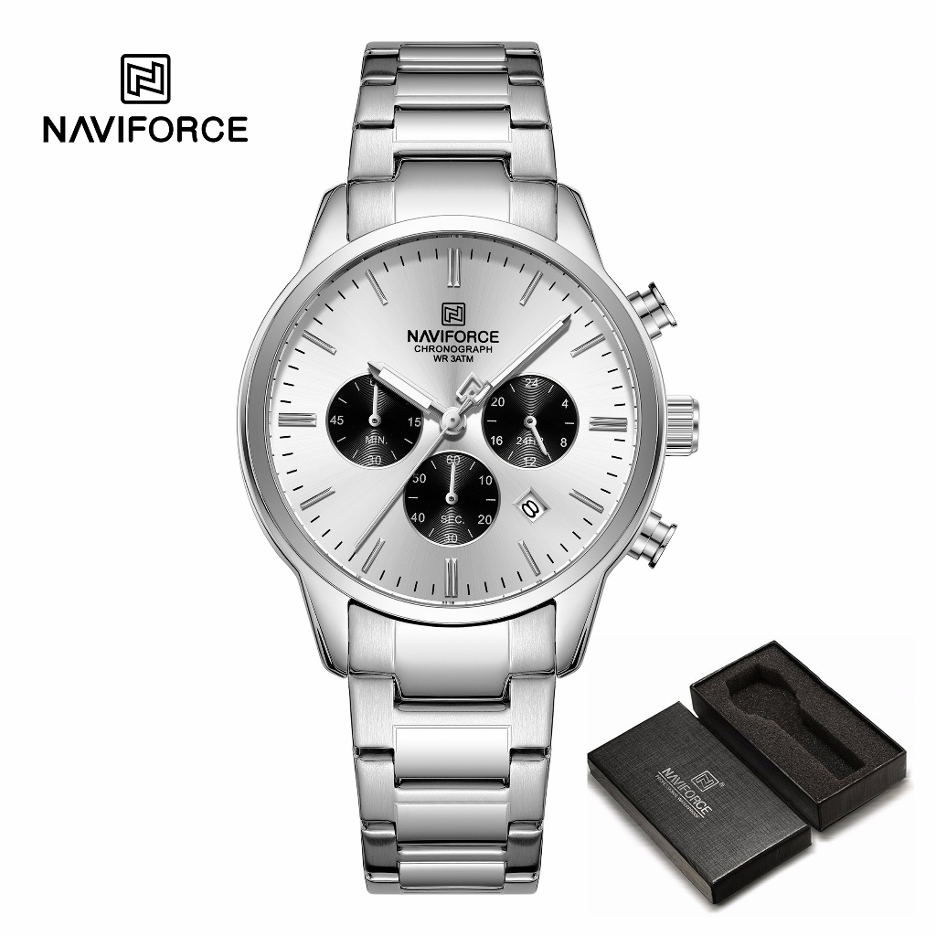 NAVIFORCE 8076 Clássico Redondo Multifuncional Janela Pulseira De Aço Inoxidável Relógio Masculino