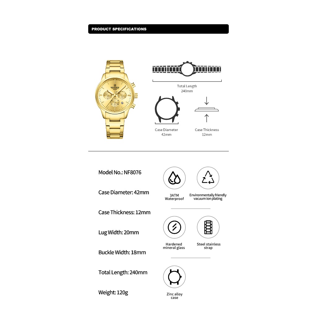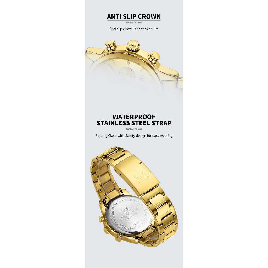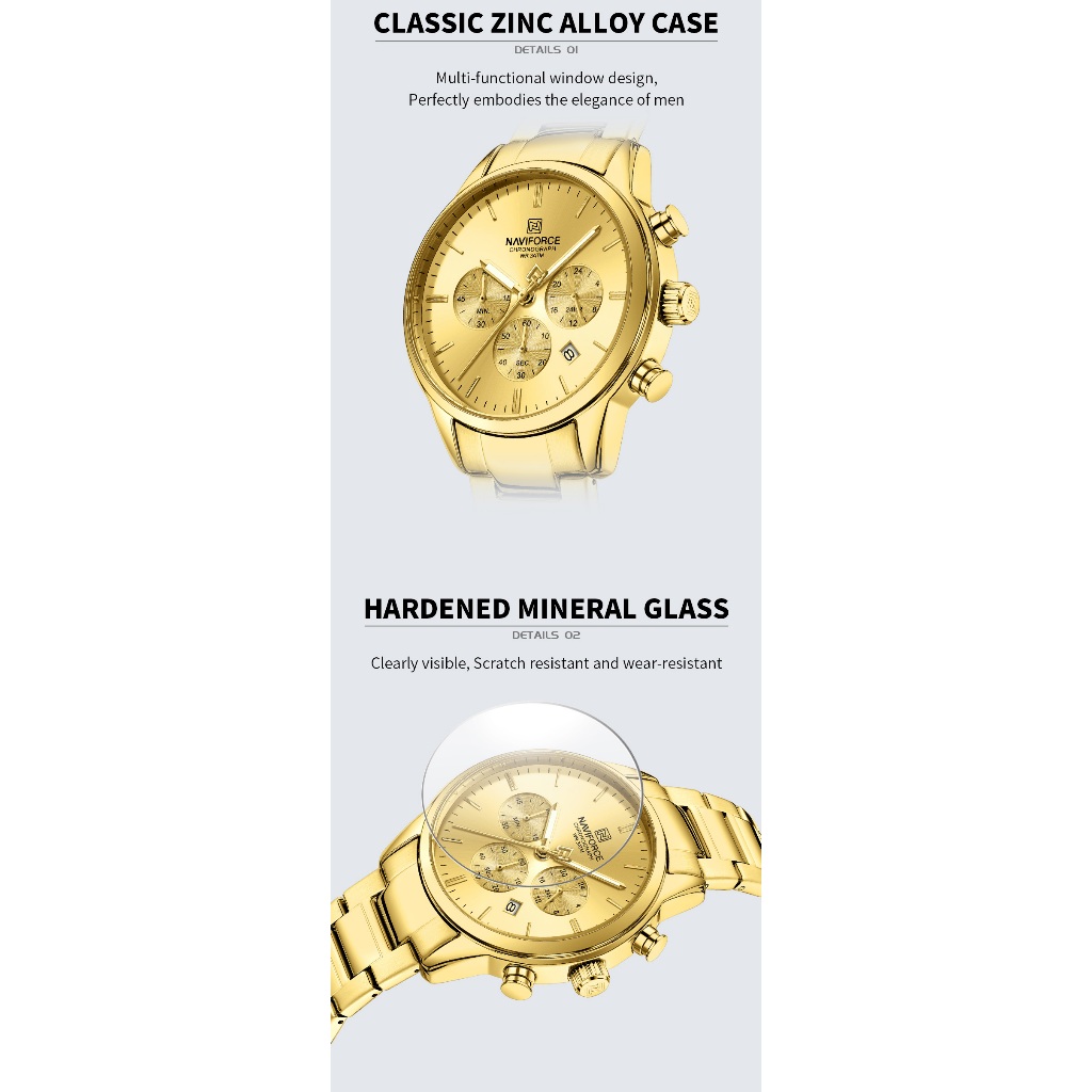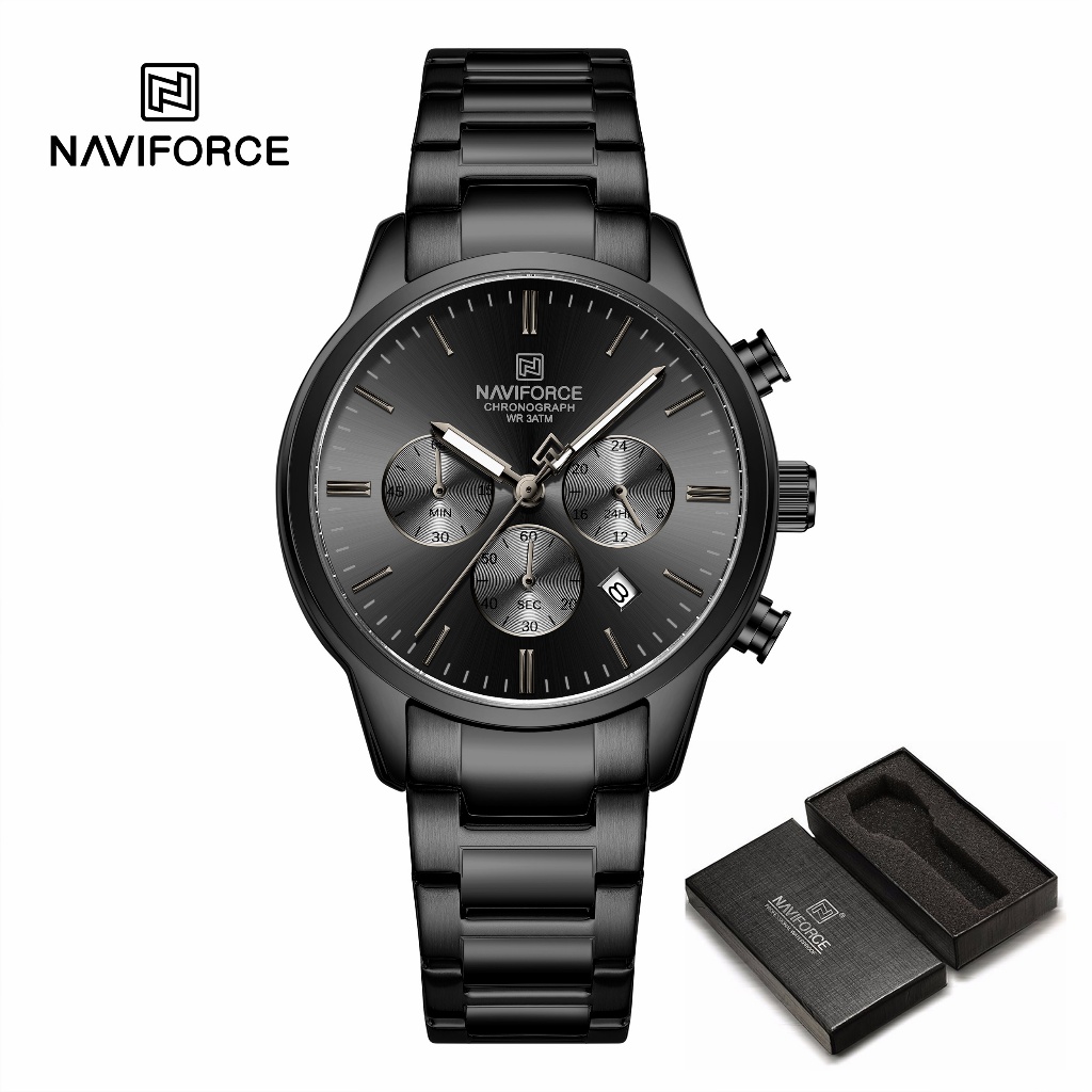 NAVIFORCE 8076 Clássico Redondo Multifuncional Janela Pulseira De Aço Inoxidável Relógio Masculino