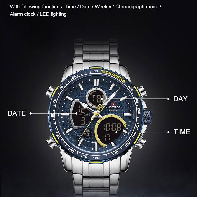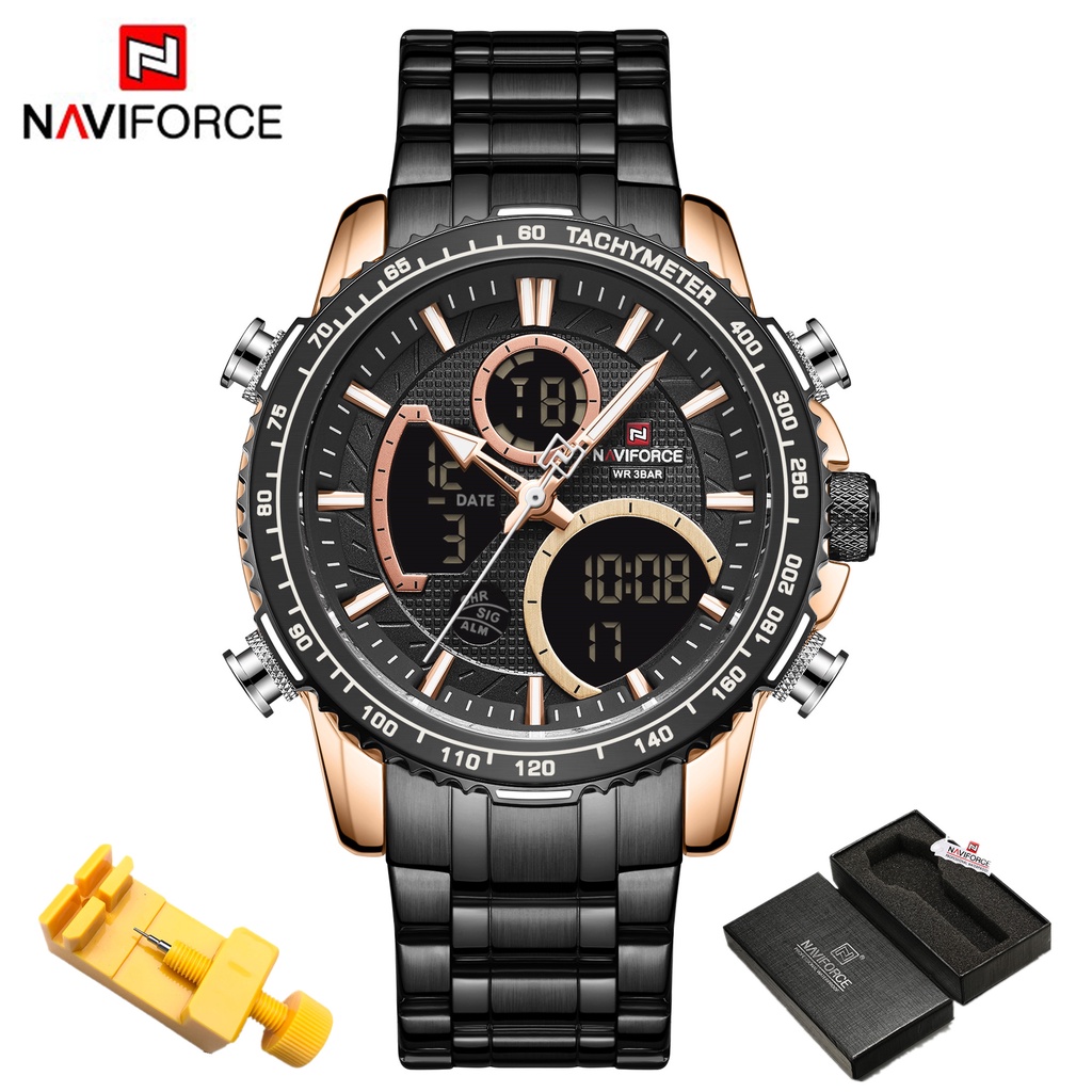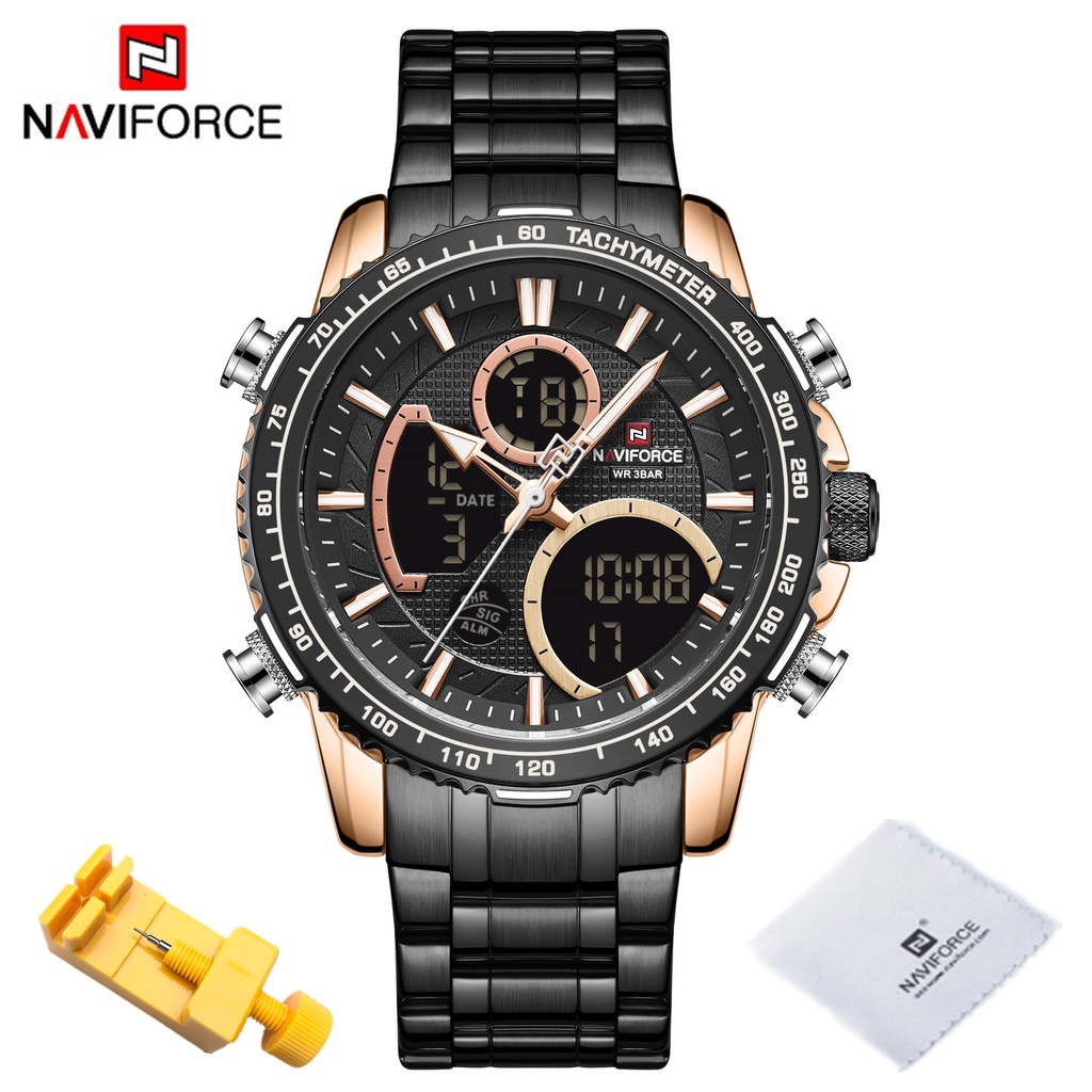 NAVIFORCE 9182 Relógio De Pulso De Quartzo Duplo Multifuncional