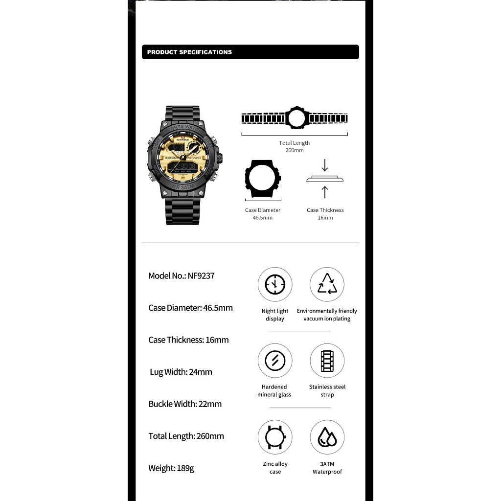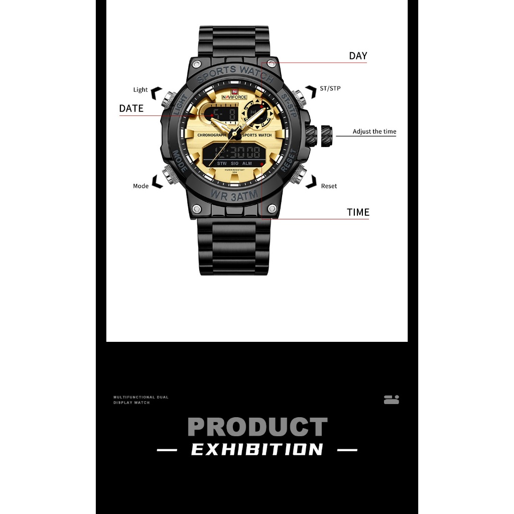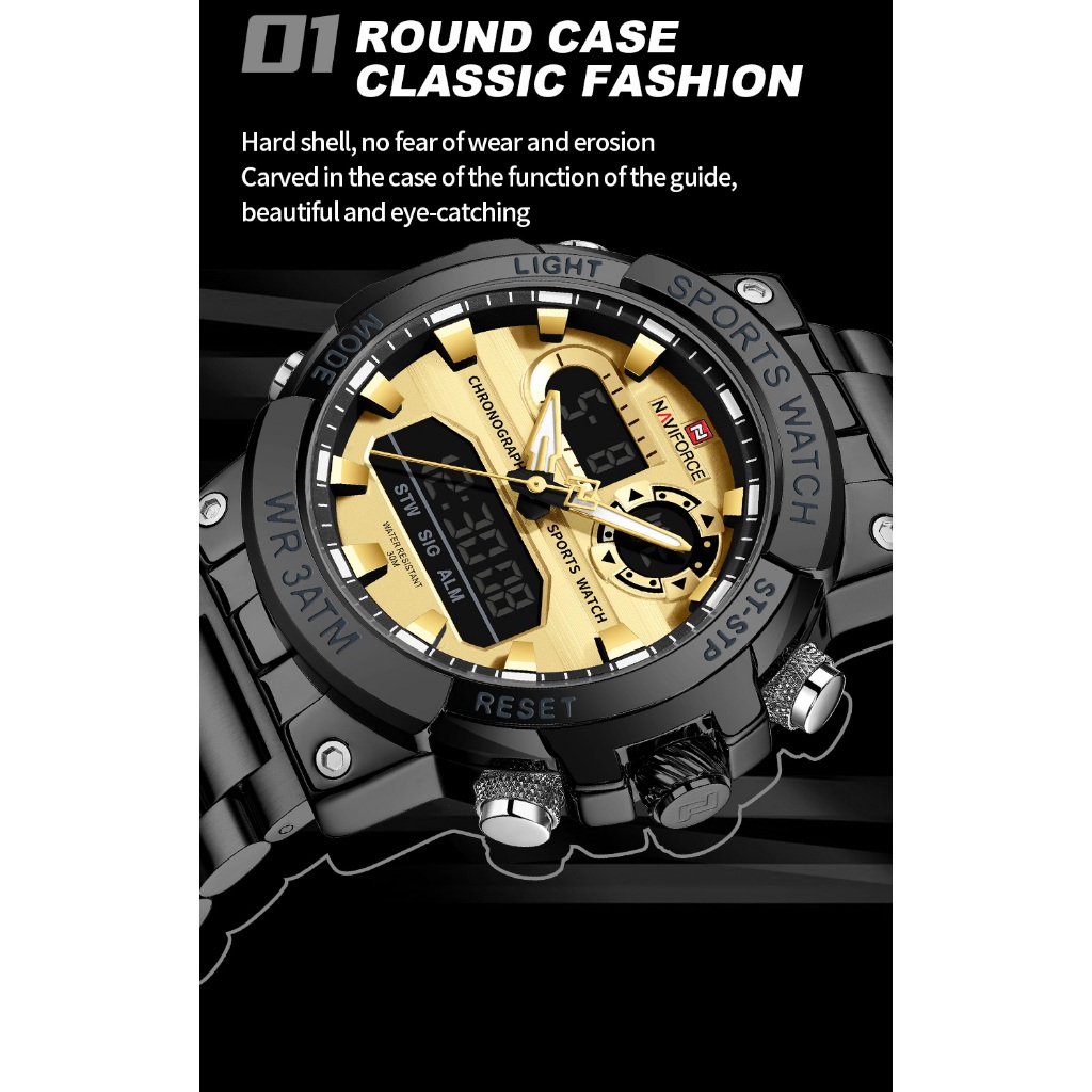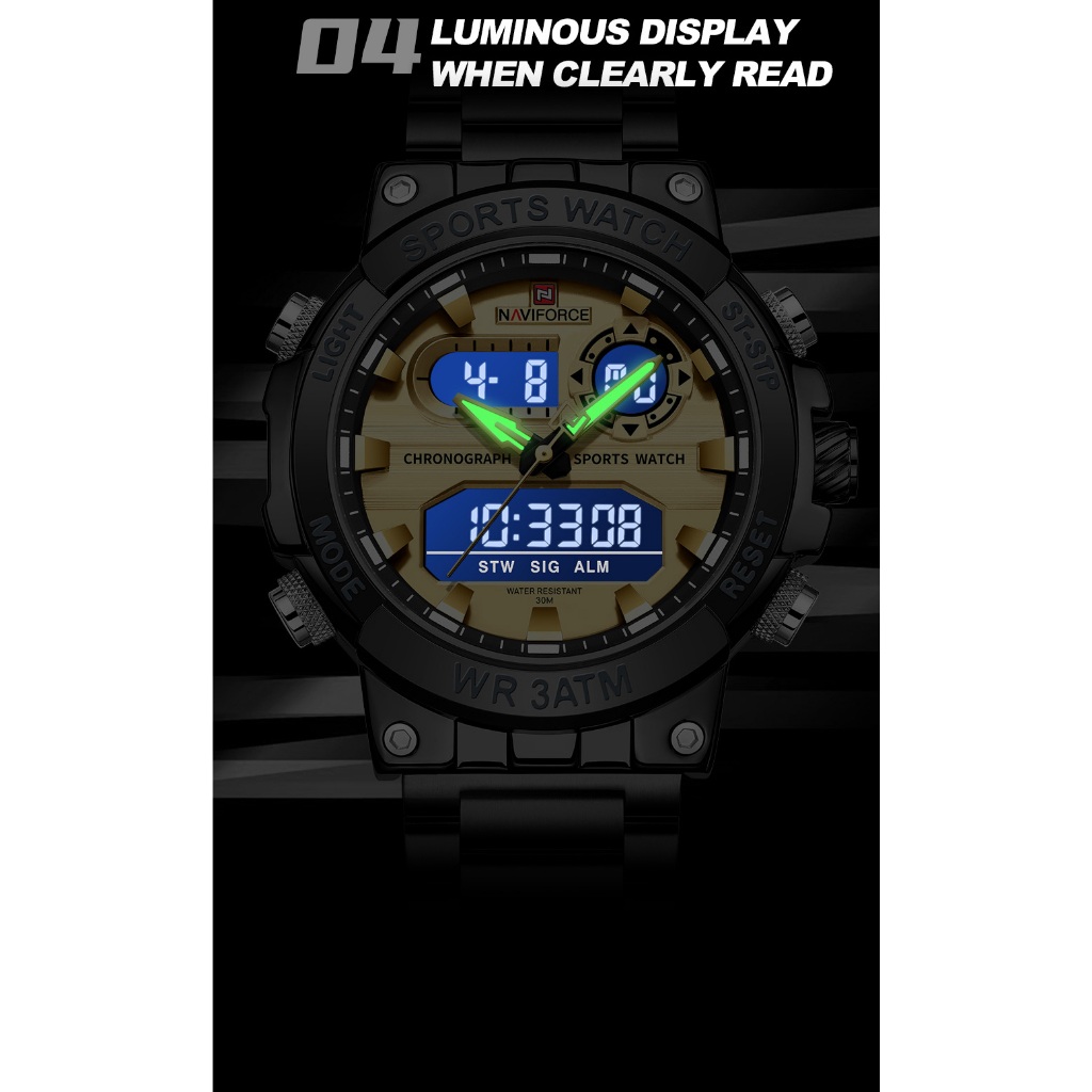 NAVIFORCE 9237 Relógio Masculino Luminoso Com Data Multifuncional À Prova D'água Para Esportes Ao Ar Livre
