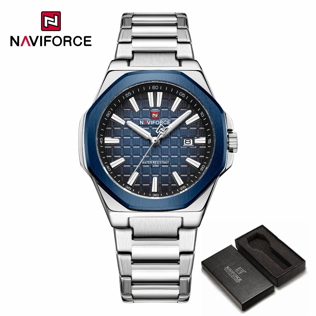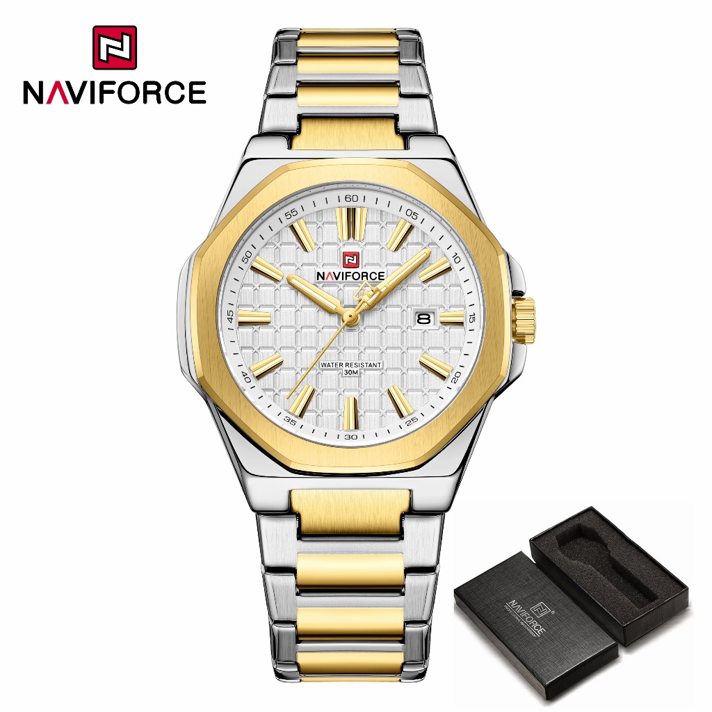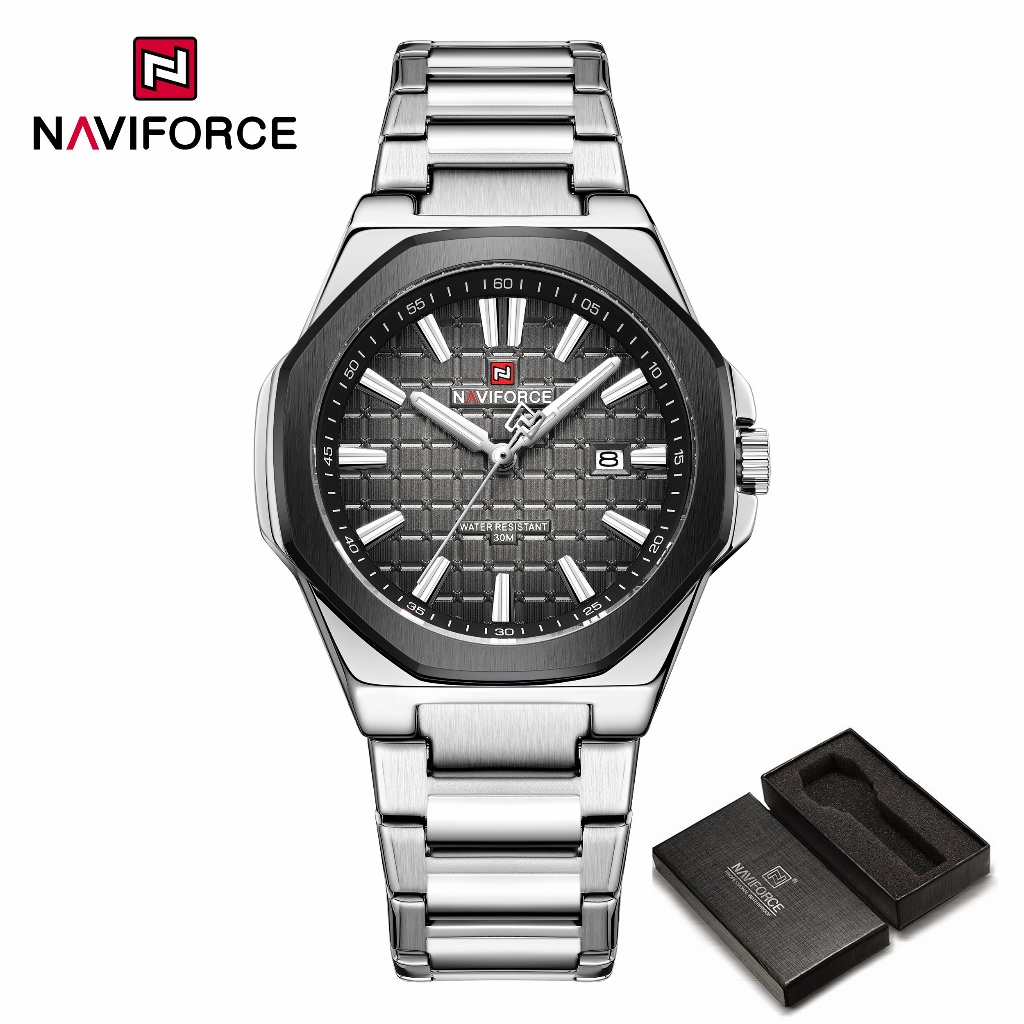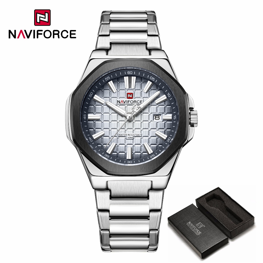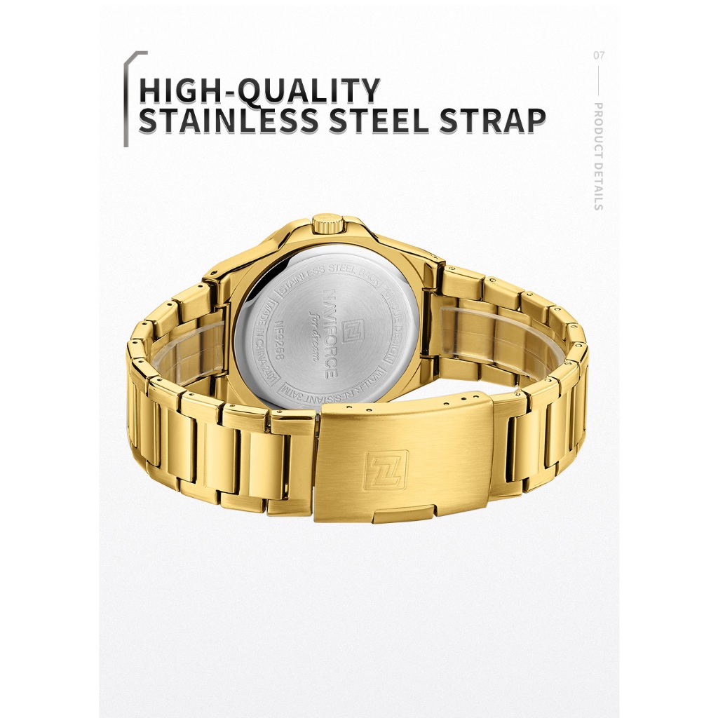 NAVIFORCE 9258 Relógio Masculino Simples Empresarial Com Pulseira De Aço Inoxidável À Prova D'água