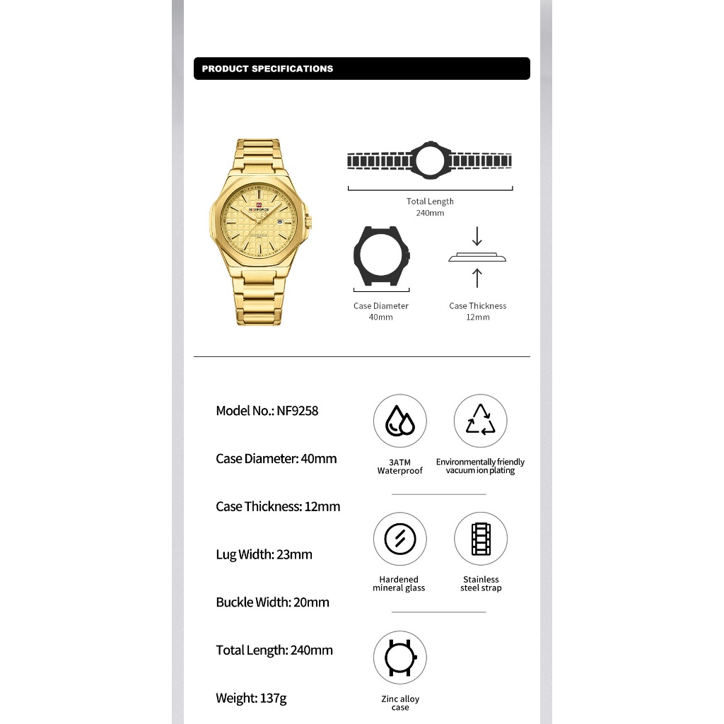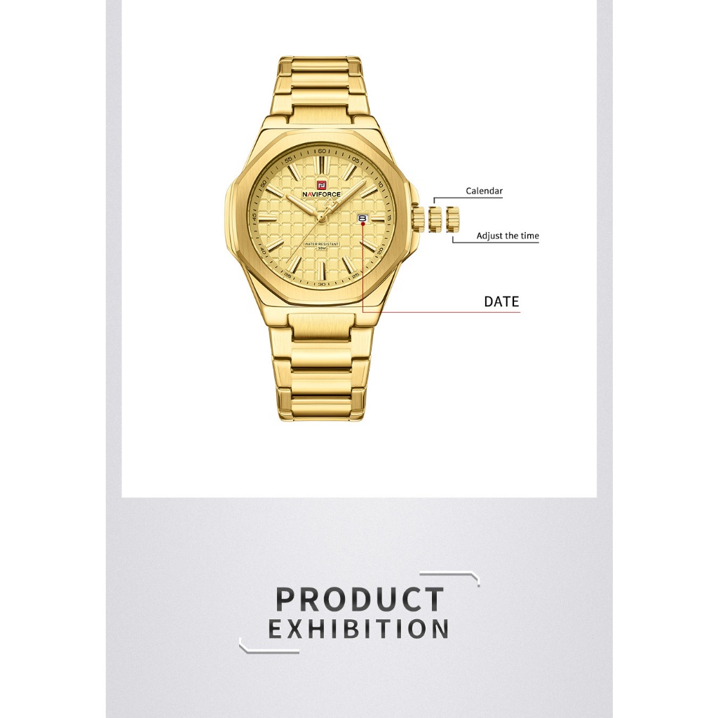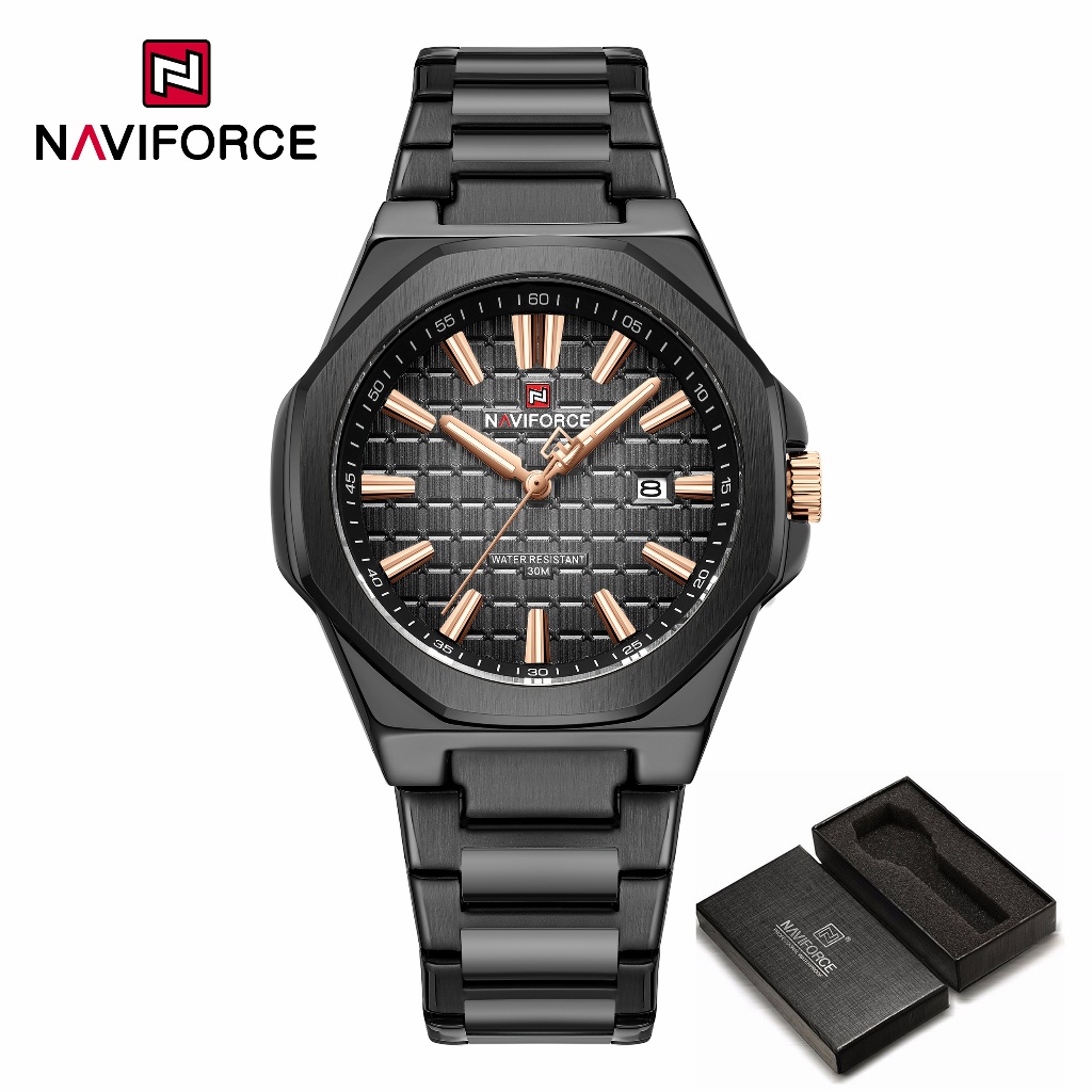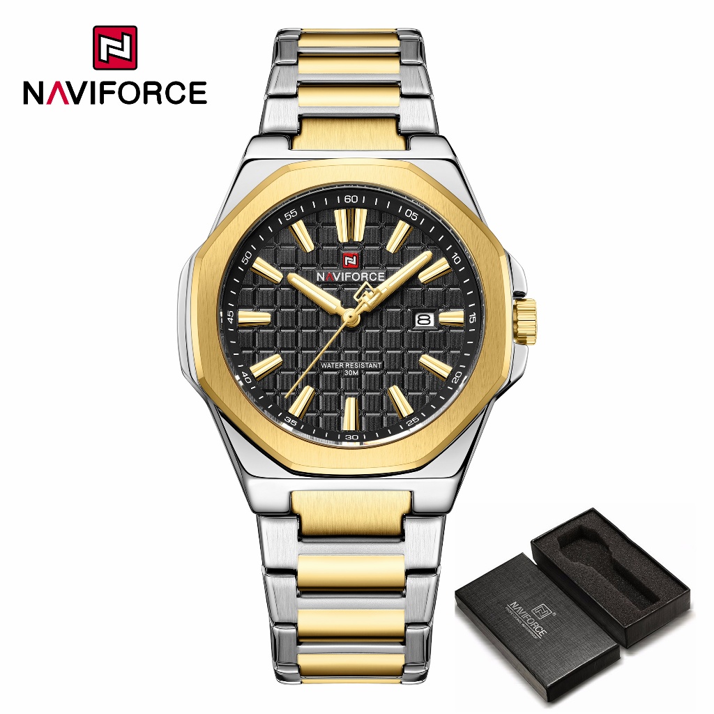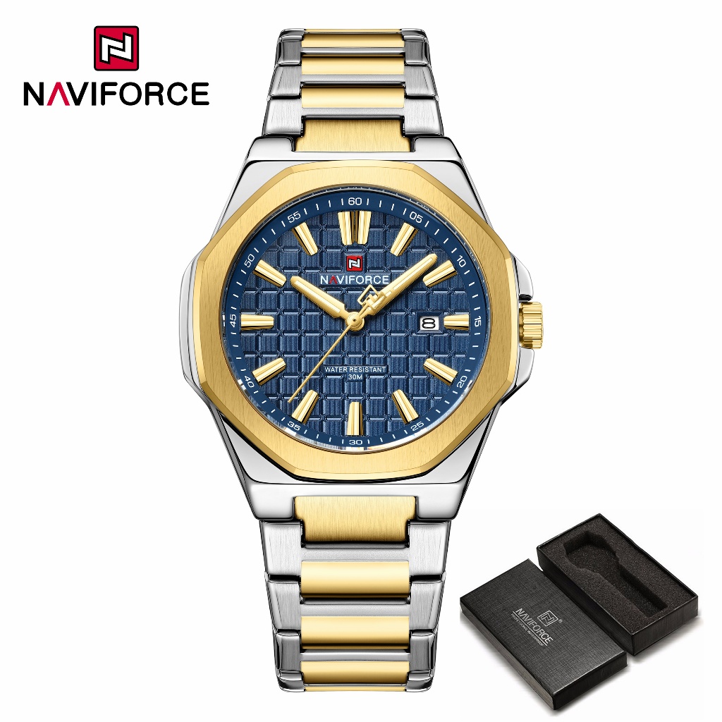 NAVIFORCE 9258 Relógio Masculino Simples Empresarial Com Pulseira De Aço Inoxidável À Prova D'água