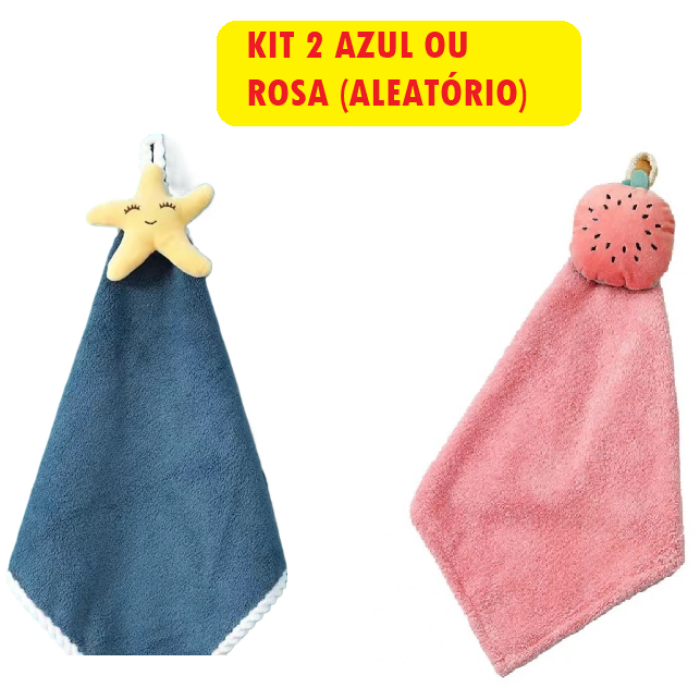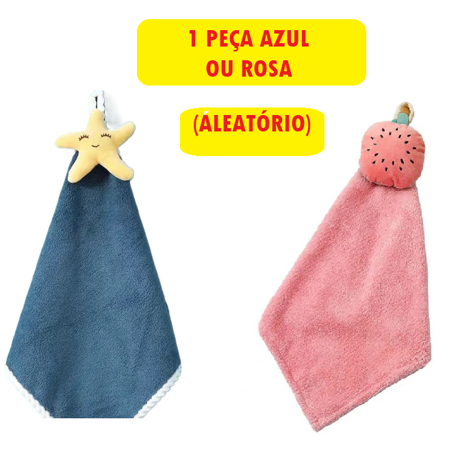 Naninha Toalha Pano de Mão 30X30 Macio Rosa ou Azul Estampas Estrela Melancia Poliéster Para Cozinha Banheiro Infantil ou Adulto Multiuso