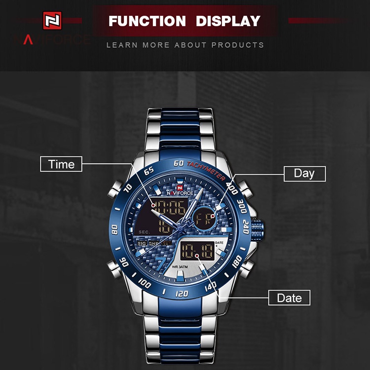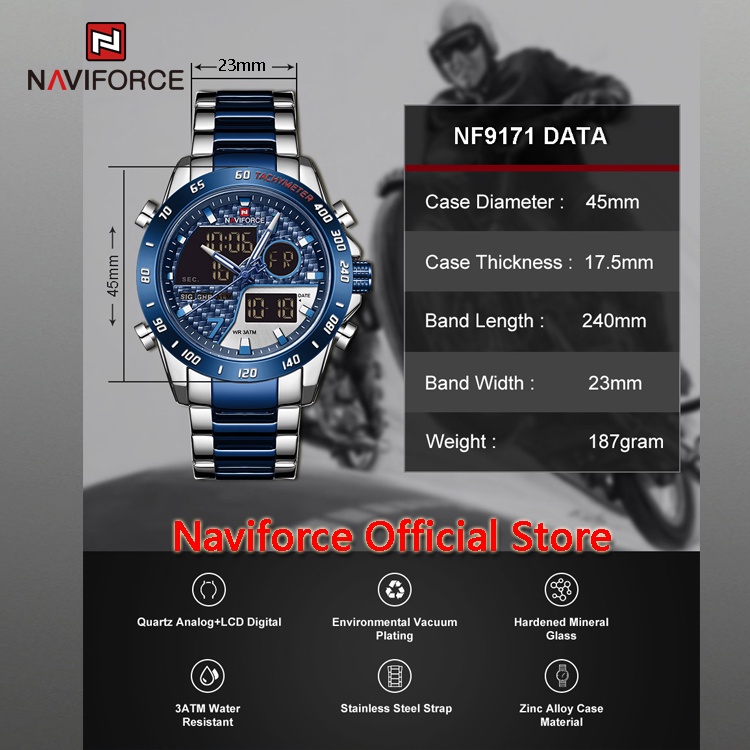 Naviforce 9171 Relógio De Pulso Digital Masculino Led Luminoso À Prova D'água