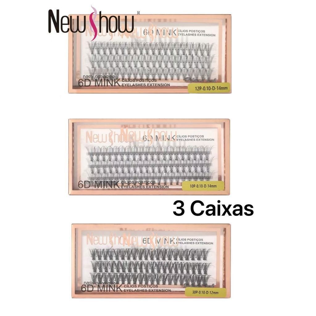 New Show KIT 3 Caixas Cílios Postiços 6D MINK 10P/20P/30P-Tufos sem Nó