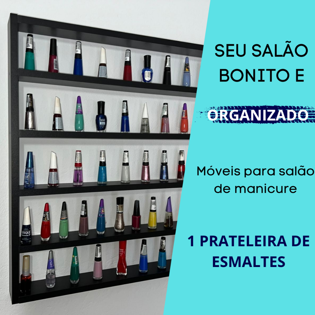 Nicho Organizador de Esmaltes Preto Para 200 esmaltes de Parede