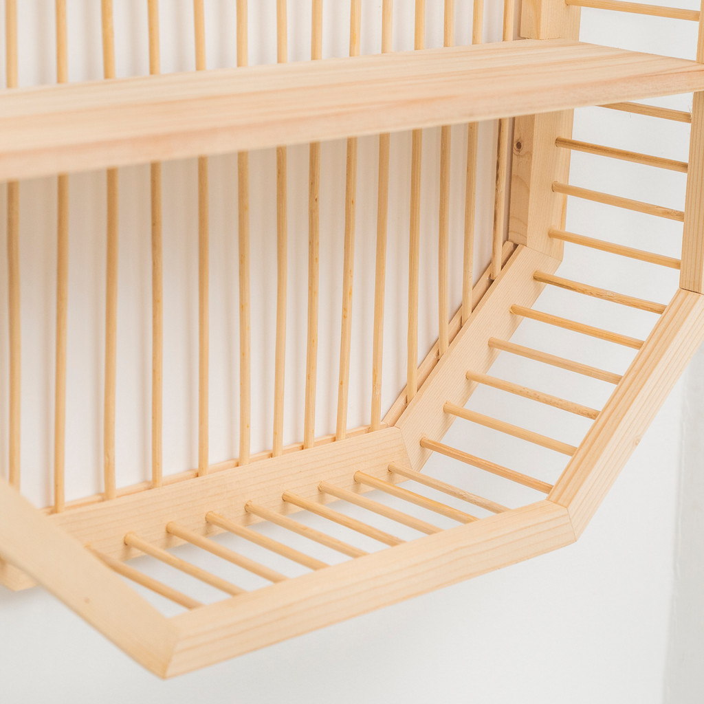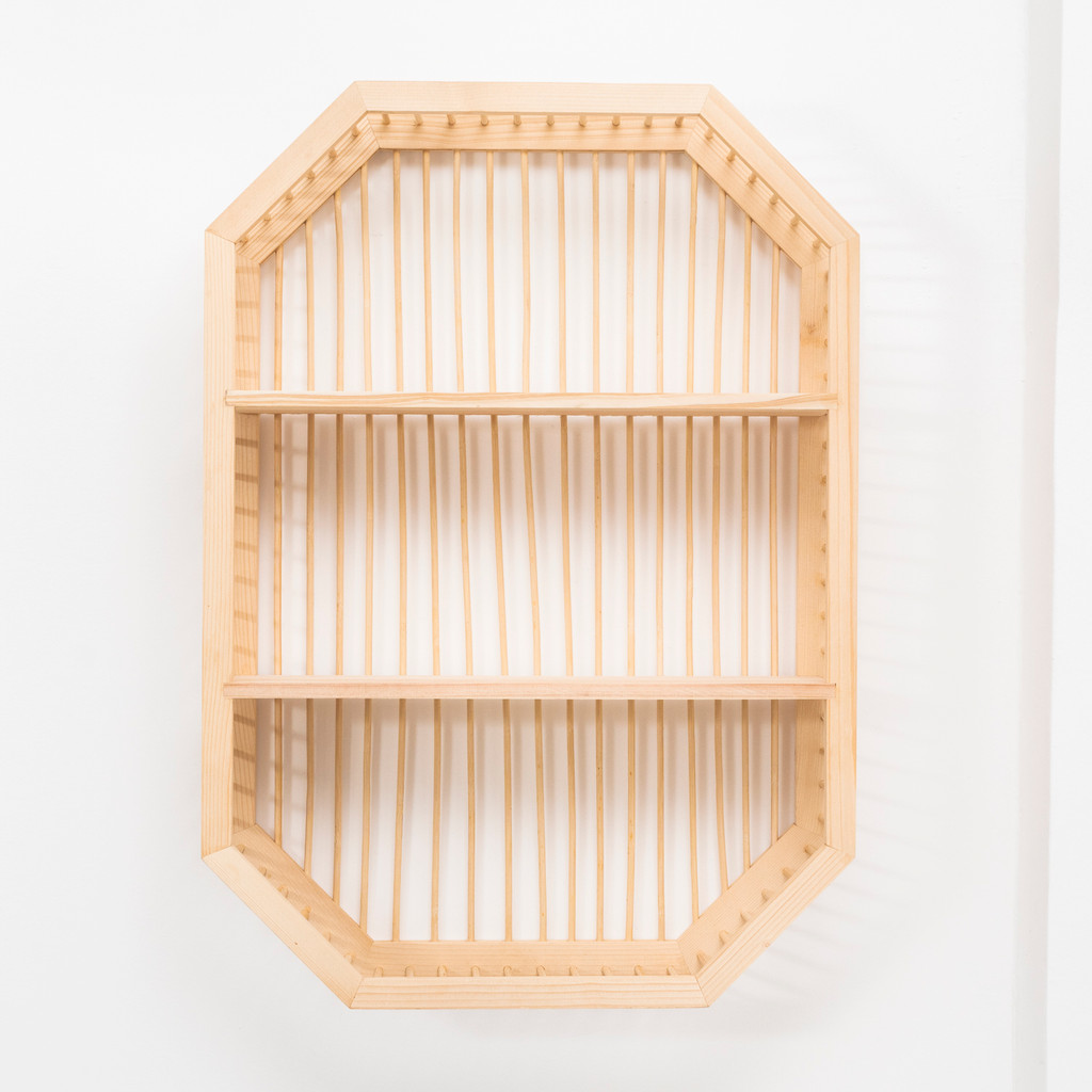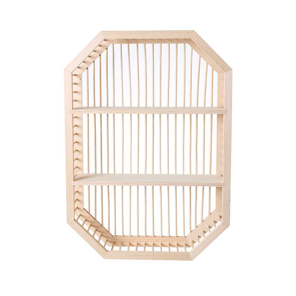 Nicho ripado de madeira com prateleiras - Oikos