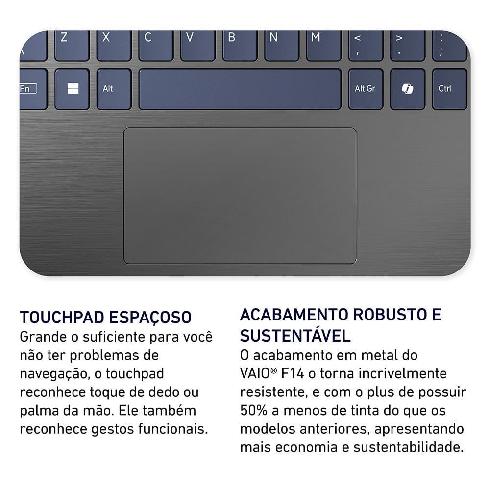 Notebook VAIO® F14 Intel® Core i5-1334U Windows 11 Home 16GB RAM 512GB SSD 14'' Full HD IPS com Fingerprint Cinza Escuro