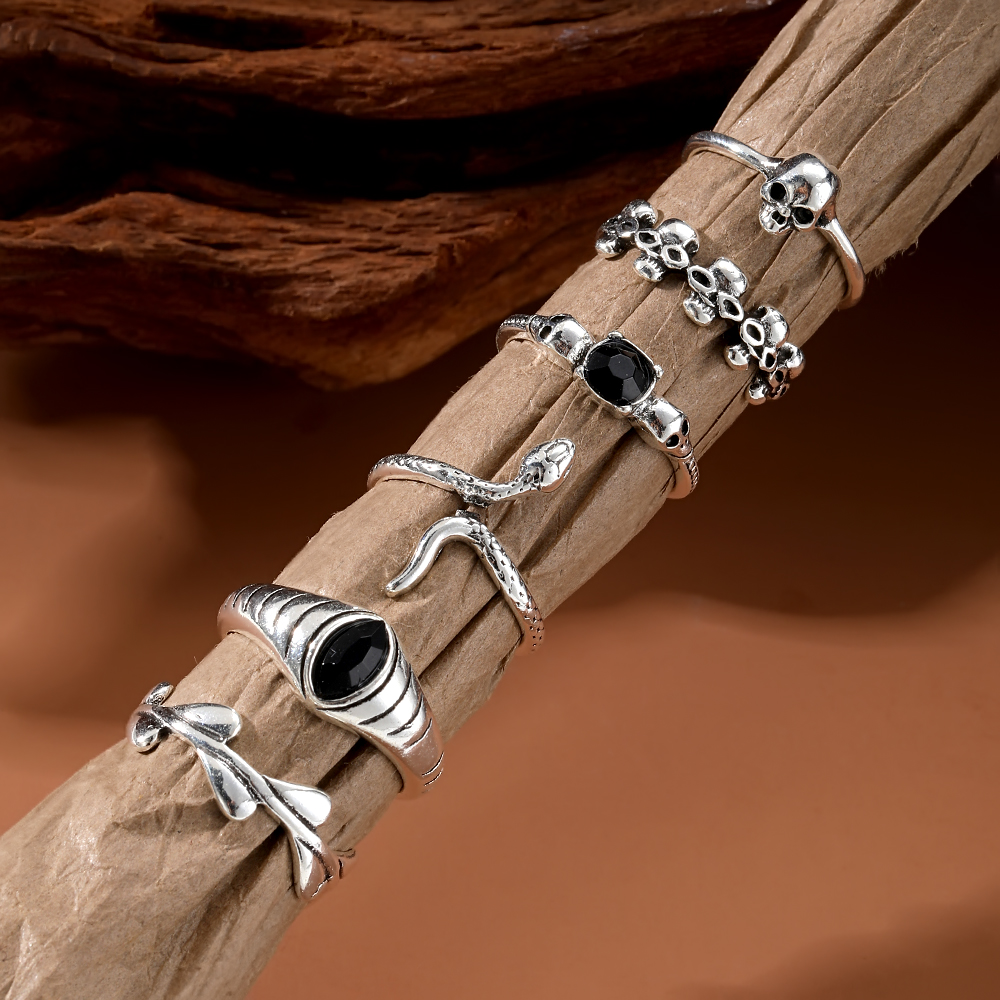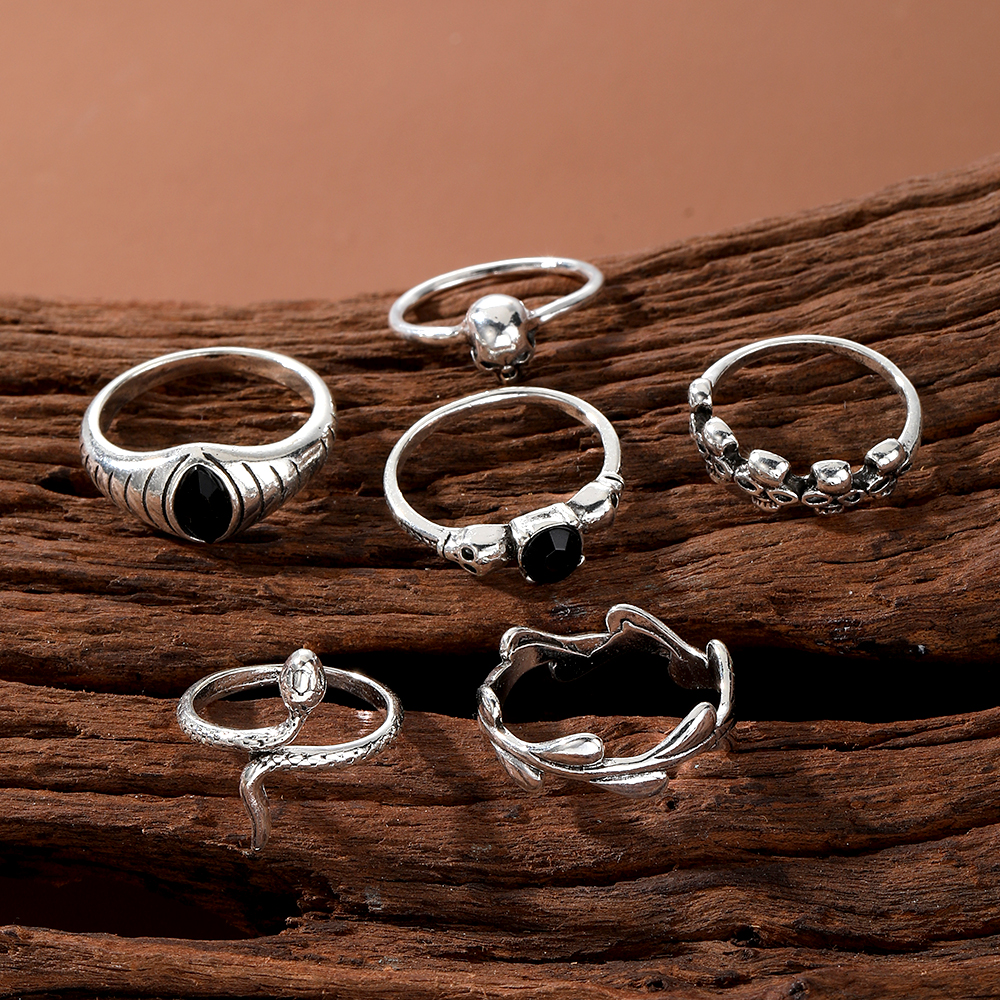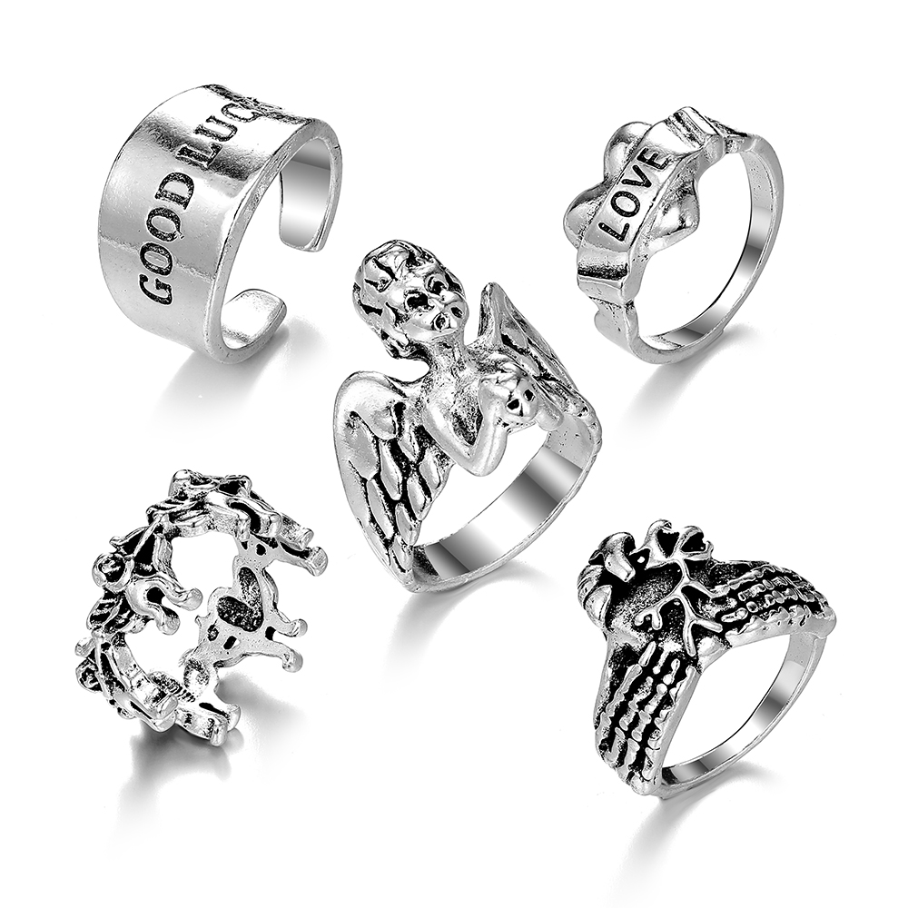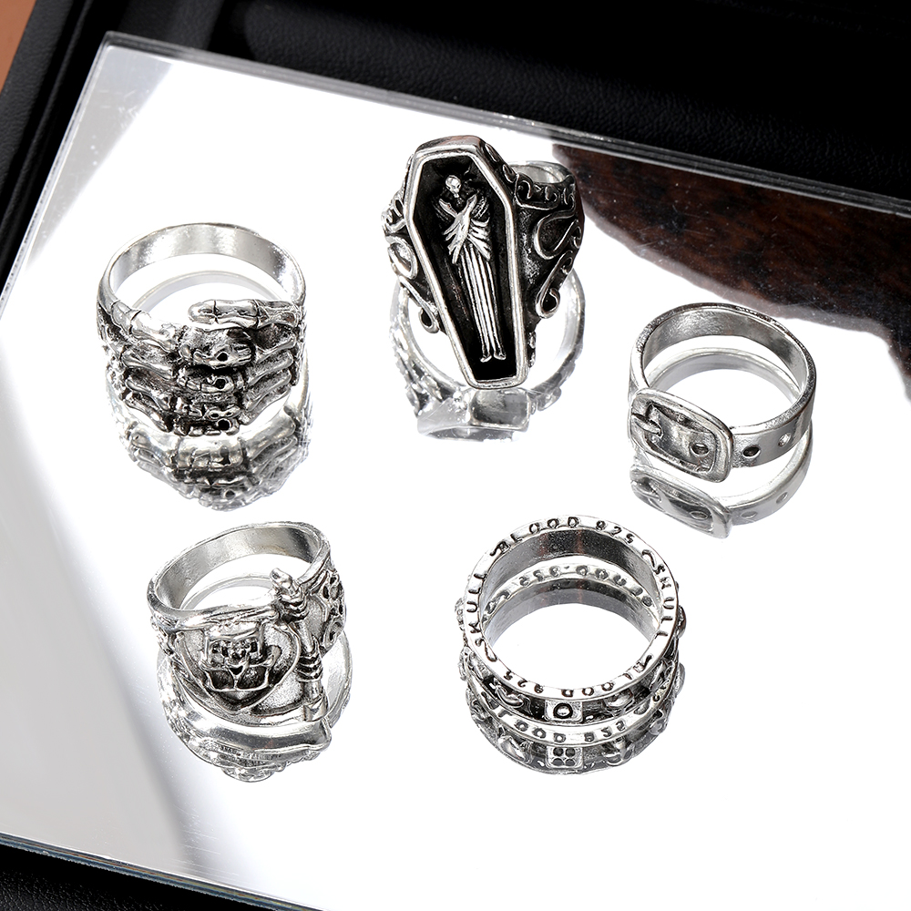 Novo Conjunto De Anel De Caveira E Folha Vintage Punk , Joias De Casal Exclusivas Para Presentes De Halloween Estilo Fel