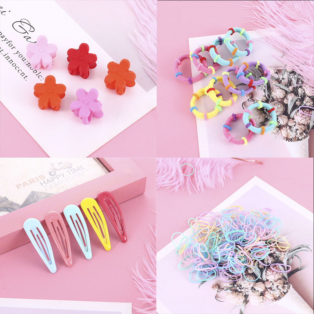 Novo Conjunto com 220 Pças de Prendedores de Cabelo em Cores de Doces e Elásticos para Penteado em Rabo de Cavalo para