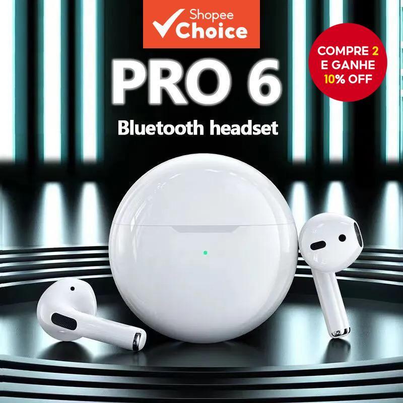 Novo Pro 6 TWS Fones De Ouvido Sem Fio Bluetooth HiFi Estéreo Com Redução De Ruído ENC À Prova D'água De Longa Duração C