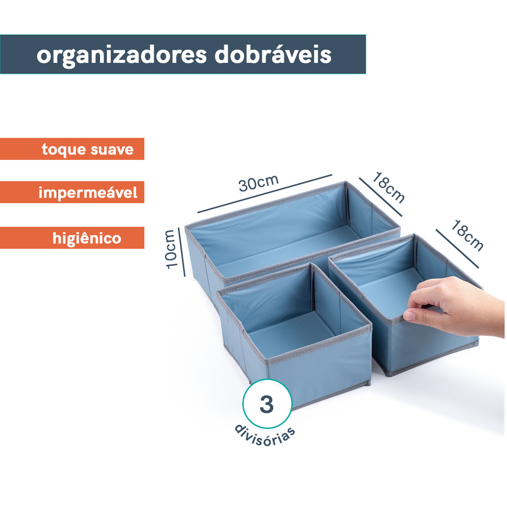 ORGANIZADOR DOBRÁVEL COM 3 DIVISÓRIAS OIKOS