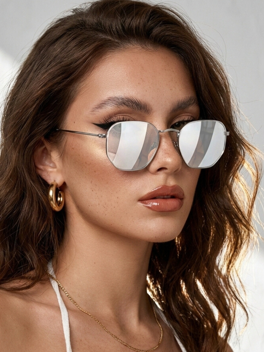 Oculos de Sol Hexagonal Prata Espelhado Classico Premium Original Vintage uv400 Feminino Masculino