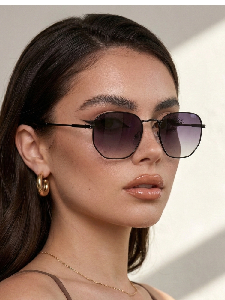 Oculos de Sol Hexagonal Preto Degrade Original Premium Blogueira Tendencia uv400 Feminino Masculino