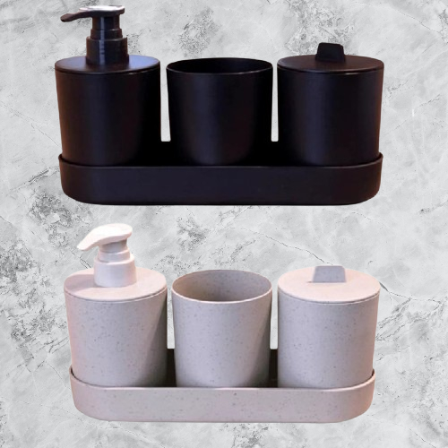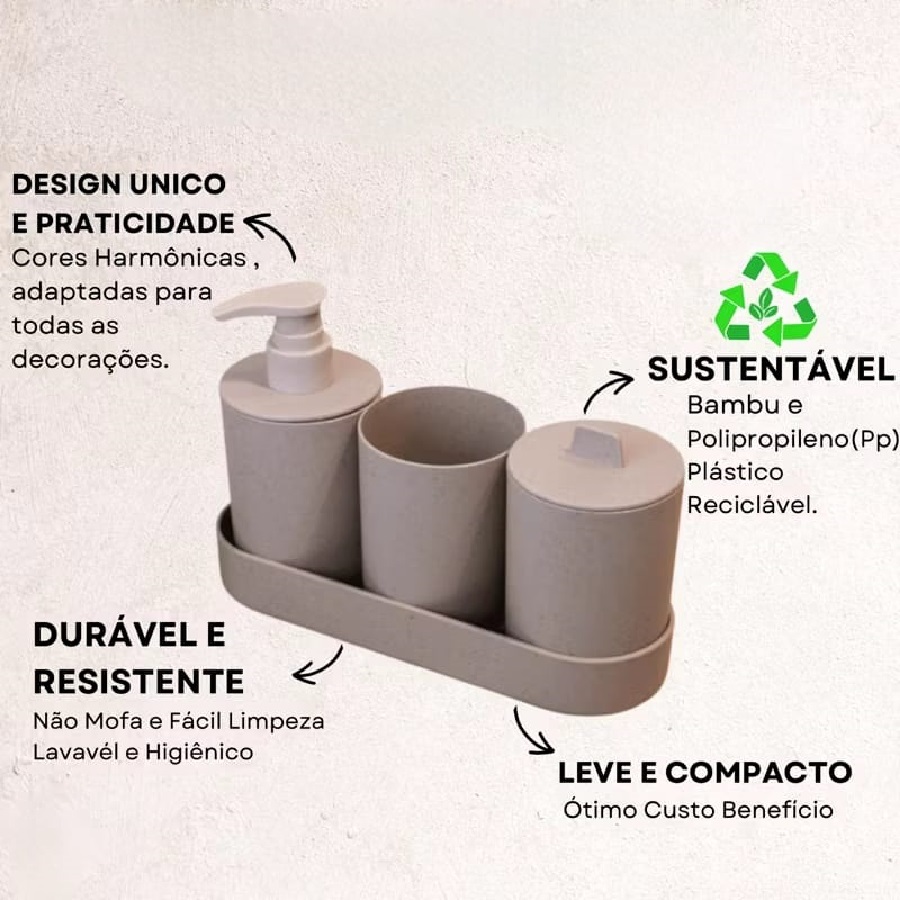 Oferta kit 4 Peças Conjunto Banheiro Lavabo Porta Sabonete Liquido Ecológico Sustentável Resistente E Forte