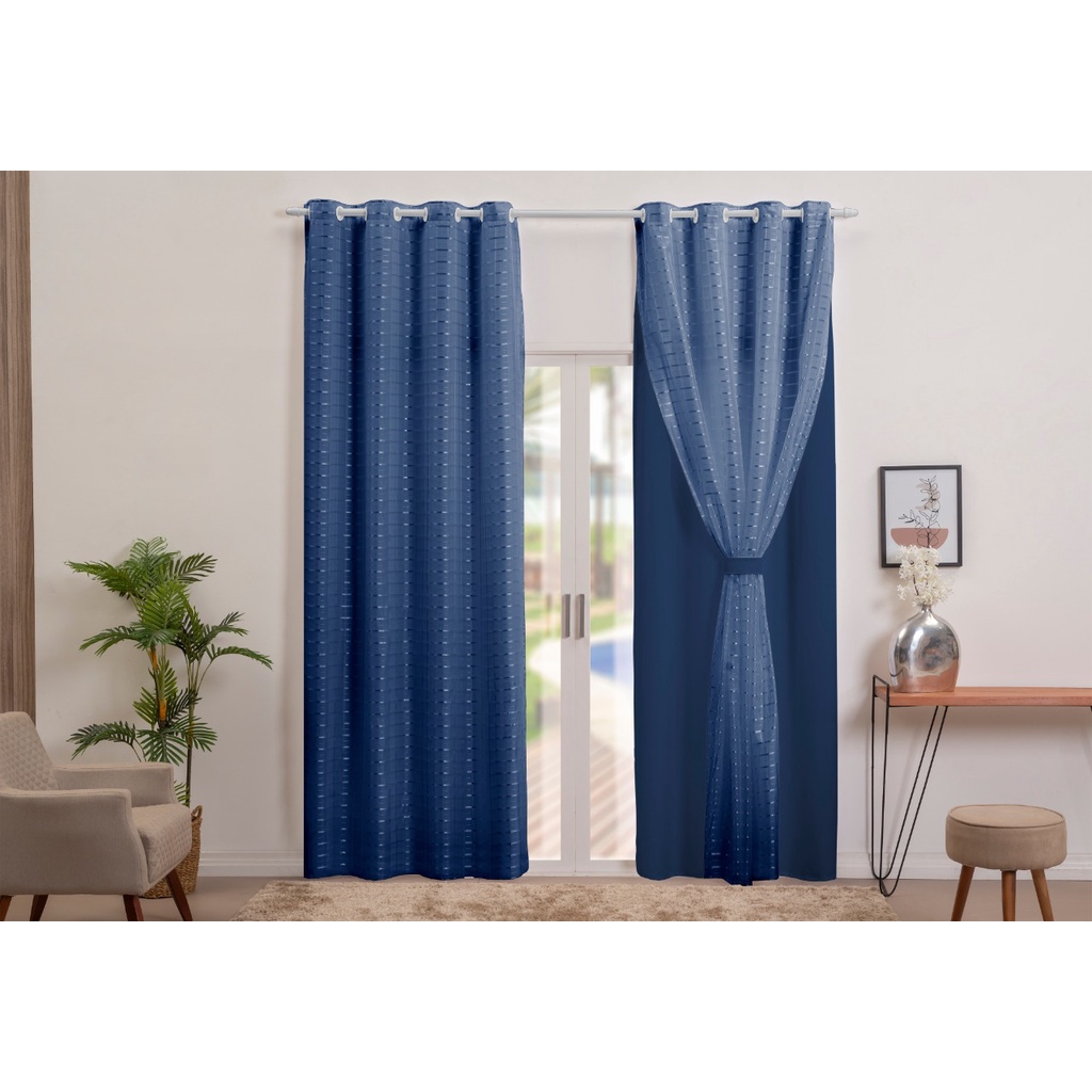 Cortina Blackout Pvc Com Voil Xadrez de 2 a 2,80 metros de largura